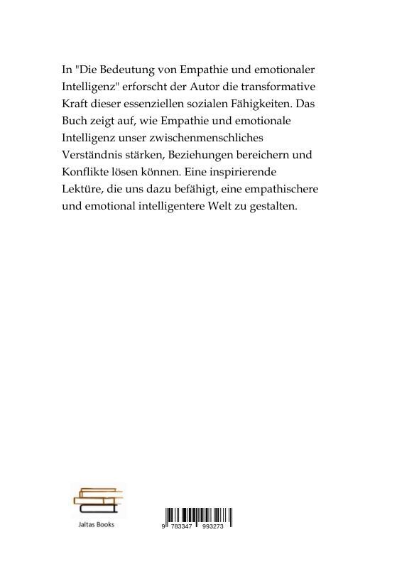 In "Die Bedeutung von Empathie und emotionaler Intelligenz" erforscht der Autor die transformative Kraft dieser essenziellen sozialen Fähigkeiten. Das Buch zeigt auf, wie Empathie und emotionale Intelligenz unser zwischenmenschliches Verständnis stärken, Bezie...