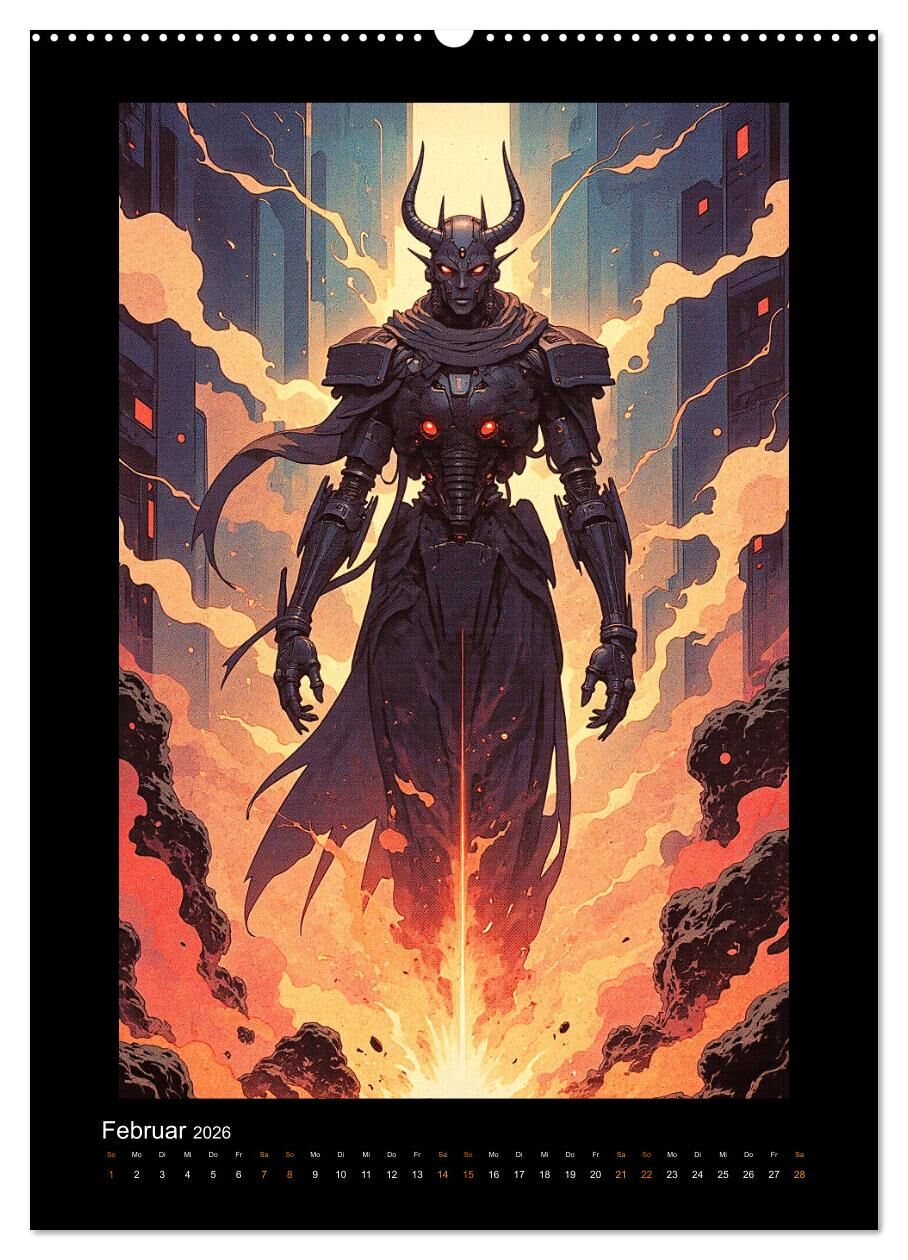 Cybertronic Chaos: Anime-inspirierte KI- Charaktere (Wandkalender 2026 DIN A2 hoch), CALVENDO Monatskalender