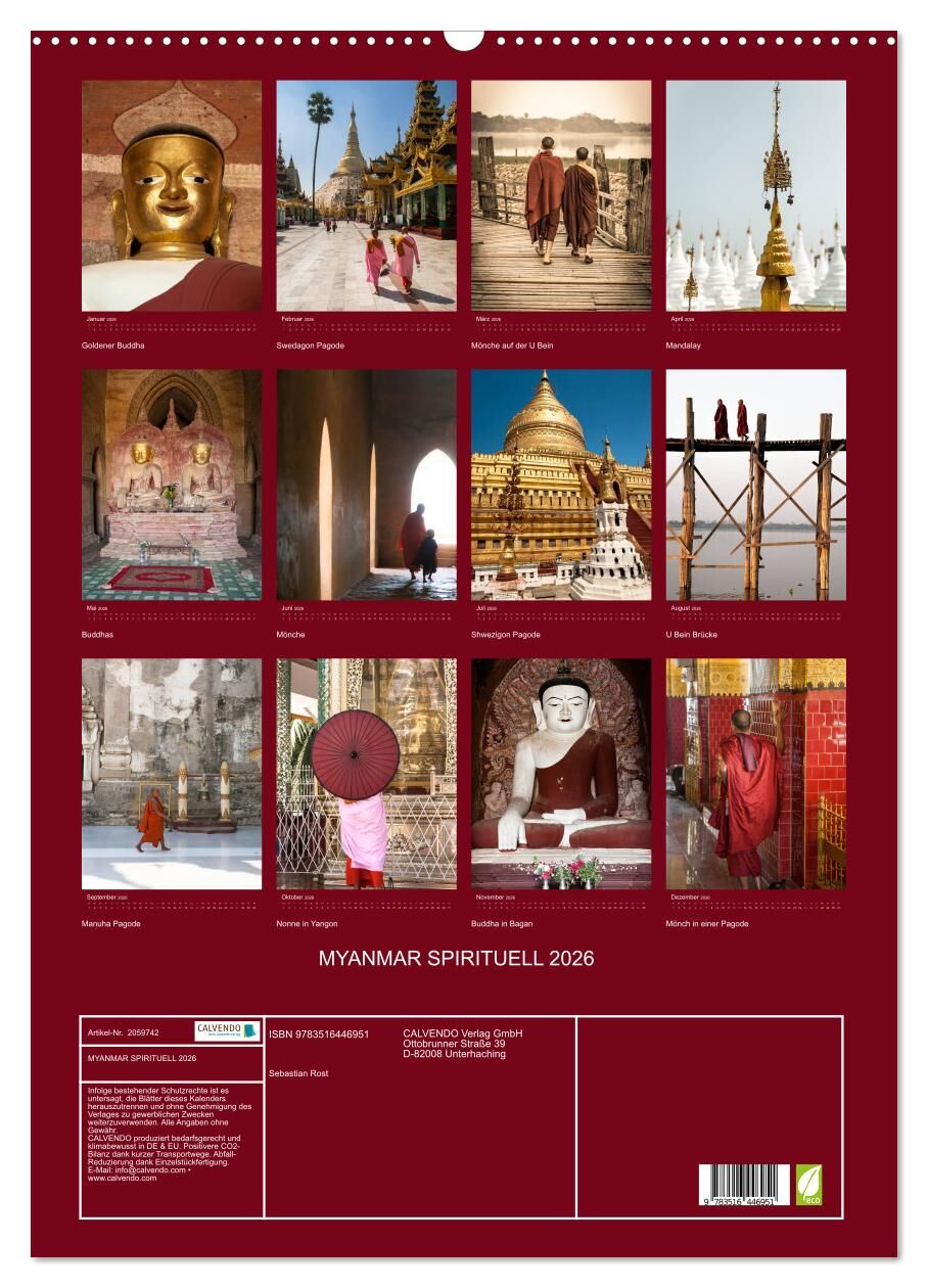MYANMAR SPIRITUELL 2026 (Wandkalender 2026 DIN A2 hoch), CALVENDO Monatskalender