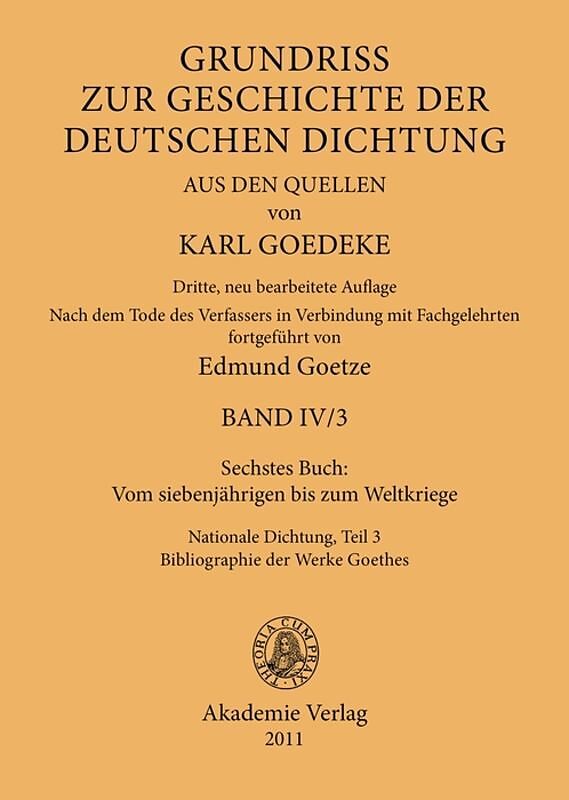 Front Matter -- Fortsetzung Siebentes Kapitel, § 235, A. Sammlungen von Goethes Schriften und B. Ausgewähltes aus den Schriften -- Fortsetzung Siebentes Kapitel, § 236§ 237, Werke bis zum Herbst 1775 -- Fortsetzung Siebentes Kapitel, § 238§ 239, Von Ende 1775 ...