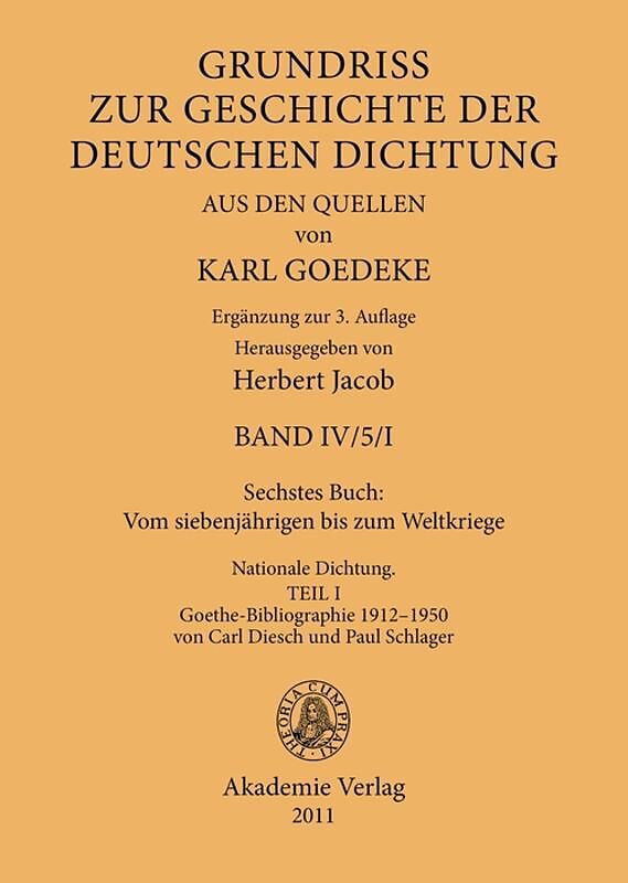 Front Matter -- A. Bibliographische Hilfsmittel und B/I. Lebensbeschreibungen, B/II. Biographische Einzelheiten, B/III. Denkmäler, B/IV. Bildnisse, Büsten, Medaillen, B/V. Goethefeiern, B/VI. Dichtungen über und Widmungen an Goethe, B/VII. Geltung und Wirkung ...