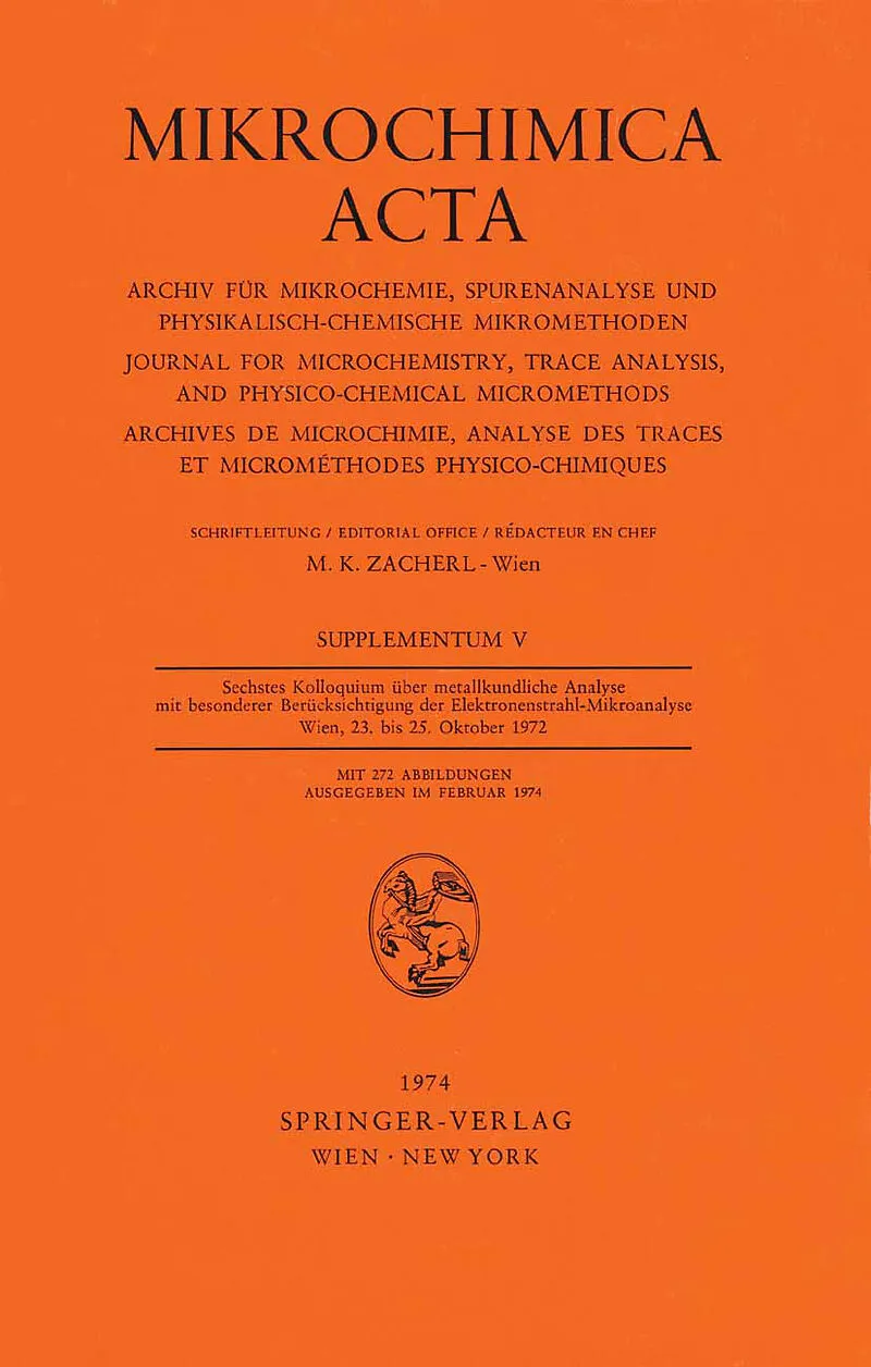 Zur Frage der günstigsten Anregungsspannung bei der Elektronenstrahl-Mikroanalyse.- On the Most Advantageous Excitation Voltage for Microprobe Analysis.- Zur Frage der Bestimmung des Untergrundes bei der quantitativen Mikroanalyse.- The Analysis of the Background in Quantitative Analysis.- Chemical Shift bei Verbindungsbestimmungen mit der Mikrosonde.- Chemical Shift in the Investigation of Compounds with the Microprobe.- Berührungslose Temperaturmessung an elektronenbestrahlten Targets in der Mikrosonde.- The Measurement of Temperature in Electronirradiated Targets in Microprobes without Touching Them.- Die Bestimmung der Nachweisgrenze dünner Schichten auf einem Substrat.- The Determination of the Detection Limit of Thin Layers on a Substrate.- Zur quantitativen Bestimmung dünner Metallaufdampfschichten mit der Elektronenstrahl-Mikrosonde.- The Quantitative Determination of Thin Metallization Layers by Means of Micro Probe Analysis.- Einsatz der Probenstromsteuerung bei der Mikroanalyse von Brüchen.- Application of Control of Current from a Probe in the Microanalysis of Cracks.- Untersuchungen an Fe-Cr-C-Legierungen mit Molybdänzusätzen.- Investigations on Fe-Cr-C-alloys Containing Molybdenum.- Einfluß der erstarrungsbedingten Chromseigerung auf die Kohlenstoffverteilung.- Effect on the Partition of Carbon of the Separation of Chromium Caused by Freezing.- Die Anwendung der Mikrosonde und von Isolierungsverfahren zur Erfassung primärer und sekundärer calciumhaltiger Desoxydationsprodukte im Stahl.- The Use of Microprobes and of Separation Procedures to Investigate Primary and Secondary Calcium-containing Deoxidation Products in Steel.- Die Bestimmung von Calzium-Silikat-Einschlüssen im Stahl. Diskussionsbeitrag zum Vortrag von J. Bruch.- Eine Methode zurVerhinderung unzulässiger Probenerwärmung, zur Verbesserung der Zählstatistik sowie ein Korrekturverfahren zur Bestimmung kleiner Diffusionskoeffizienten bei Mikrosondenmessungen.- An EMPA Technique for the Prevention of Undesirable Heating of Samples, for the Improvement of Counting Statistics, and a Correction Procedure for Small Diffusion Coefficient Measurements.- Aufbau und Anwendung einer Elektronenstrahlmakrosonde.- Construction and Use of an Electron-Beam Macroprobe.- Möglichkeiten zur Darstellung des Gefügeaufbaues.- The Representation of Structural Constitution.- Möglichkeiten zur Darstellung der Gefügehomogenität. Diskussionsbeitrag zum Vortrag von A. Kulmburg.- Fortschritte auf dem Gebiet der Kossel-Technik.- Advances in the Field of the Kossel Method.- Korrekturprogramm für quantitative Elektronenstrahlmikroanalyse.- A Computer Program for Correction of Electron Microprobe Data.- Automatische Datenausgabe und Datenverarbeitung an einer Elektronenstrahlmikrosonde.- The Automatic Display and Working-Up of Data from an Electron-Beam Microprobe.- PETRDATA ein Programmiersystem zur Korrektur von Mikrosonden-Silikatanalysen und Berechnung von mineralischen und petrographischen Daten.- PETRDATA A Program for Correcting Silicate Analysis by Microprobes, and Calculating Mineralogical and Petrographic Data.- Der Nachweis von Spurenelementen mit der Elektronenstrahl-Mikrosonde am Beispiel von Eisen-Kohlenstoff-Legierungen.- The Detection of Trace Elements in Iron-Carbon Alloys by Means of an Electron-Beam Microprobe.- Bedeutung der Spurenphasenanalyse in der Pulvermetallurgie.- On the Importance of Trace Phase Analysis in Powder Metallurgy.- Elektrochemische Sauerstoffbestimmung und Thermodynamik der Löslichkeit in flüssigen Metallsystemen.- TheElectrochemical Determination of Oxygen, and the Thermodynamics of its Solubility in Liquid Metal Systems.- Einsatz der elektrochemischen Phasenisolierung zum Studium der Aushärtevorgänge einer martensitischen Fe-Ni-Mn-Legierung.- Application of Electrochemical Isolation of Phases to the Study of the Precipitation-Hardening of a Martensitic Fe-Ni-Mn Alloy.- Photoelektronenspektrometrische Untersuchungen an auf Glas aufgedampften Metallschichten.- Photoelectron-spectrometric Investigations of Metal Films Evaporated onto Glass.- Quantitative Analyse metallischer Proben mittels Photoelektronenspektrometrie.- Quantitative Analysis of Metallic Samples by Means of Photo-electronspectrometry.- Röntgenstreuanalyse.- X-Ray Scattering Analysis.- Röntgenfluoreszenzanalytische Bestimmung von Massenschwächungskoeffizienten.- The Determination of Mass Absorption Coefficients by X-Ray Fluorescence Analysis.- Chemische Effekte bei der Auger-Elektronen-Spektroskopie.- Chemical Effects in Auger-Electron Spectroscopy.- Massenspektrographische Laser-Mikroanalyse und emissionsspektrographische Laser-Mikroanalyse unter Schutzgas mit Hilfe des Laser-Mikrospektral-Analysators LMA 1.- Mass Spectrographic Laser Microanalysis and Emission Spectrographic Laser Microanalysis in Inert Gas, with the Help of the Laser Microspectral Analyzer LMA 1.- Grundlagen, Grenzen und Möglichkeiten der Oberflächenanalyse mit Hilfe von Ionenstrahlen.- Principles, Limits, and Potentialities of Surface Analysis by Means of Ion Beams.- Beobachtungen zur Tiefeninformation der Sekundärionen-Massenspektrometrie.- On Depth Information by Secondary Ion Mass Spectrometry.- Aspekte zur qualitativen und quantitativen Analyse in der Sekundärionenmassenspektrometrie.- Notes on Qualitative and Quantitative Analysis inSecondary Ion Mass Spectroscopy.- Ein Beitrag zur Gefügeanalyse mit der Mikrosonde.- On the Structure Analysis by Use of a Microprobe.- Ein Vergleich zwischen energiedispersiver und wellenlängendispersiver Elektronenstrahlmikroanalyse.- A Comparison between Energy-Disperse and Wave-Length Disperse Electron Beam Microanalysis.