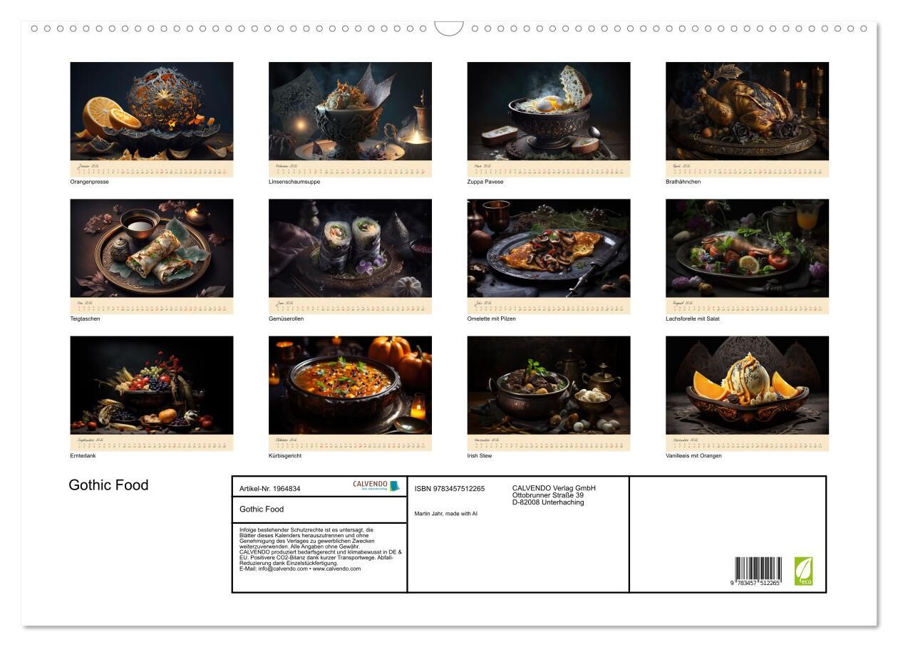 Gothic Food (Wandkalender 2026 DIN A2 quer), CALVENDO Monatskalender