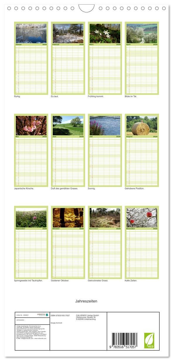 Familienplaner 2026 - Jahreszeiten mit 5 Spalten (Wandkalender, 21 x 45 cm) CALVENDO