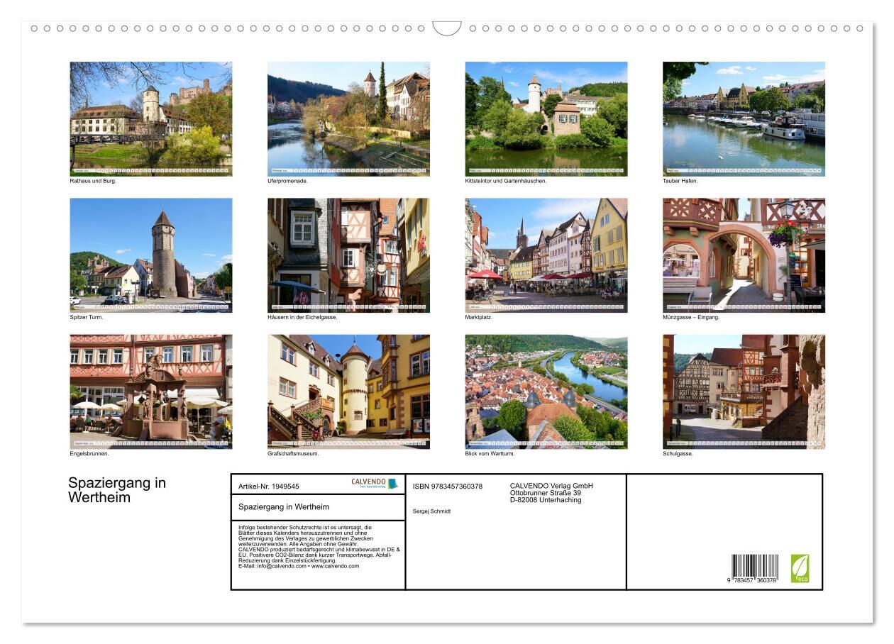 Die kompakte Altstadt Wertheims mit ihren engen Gassen, mittelalterlichen Gebäuden und der hoch aufragenden Burg schafft eine besonders romantische Atmosphäre. Dieser Kalender enthält die interessantesten Bilder der Stadt.