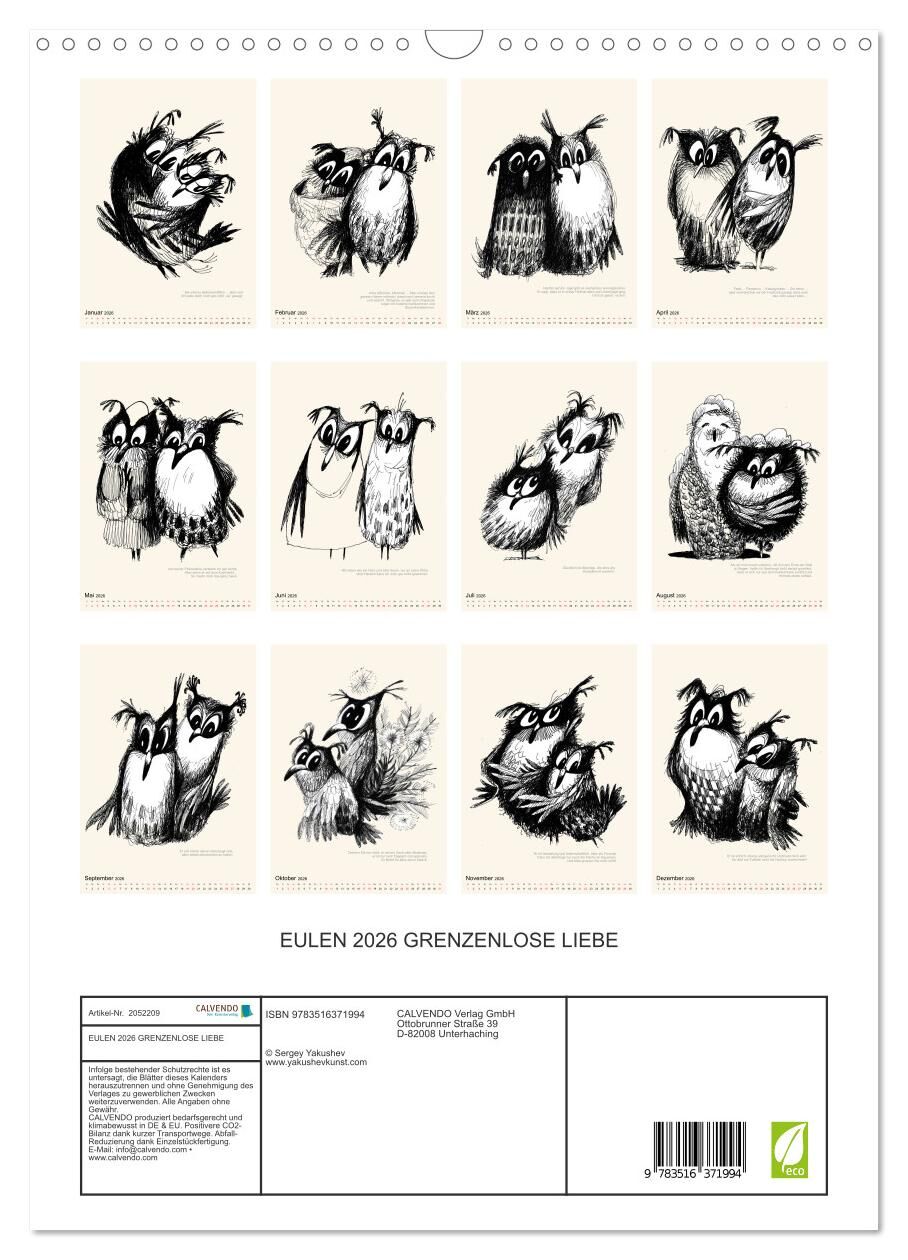 EULEN 2026 GRENZENLOSE LIEBE (Wandkalender 2026 DIN A3 hoch), CALVENDO Monatskalender
