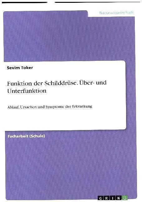 Facharbeit (Schule) aus dem Jahr 2014 im Fachbereich Biologie - Krankheiten, Gesundheit, Ernährung, Note: 2,3, , Veranstaltung: Biologie, Sprache: Deutsch, Abstract: Da das Hormonsystem, genauer die Schilddrüse, eine derartig wichtige Rolle für den menschliche...