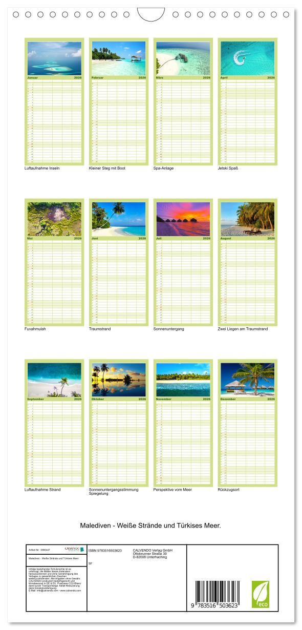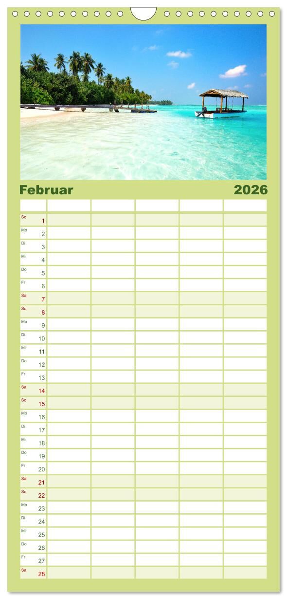 Familienplaner 2026 - Malediven - Weiße Strände und Türkises Meer. mit 5 Spalten (Wandkalender, 21 x 45 cm) CALVENDO
