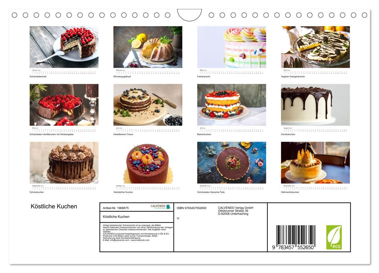 Köstliche Kuchen (Wandkalender 2026 DIN A4 quer), CALVENDO Monatskalender