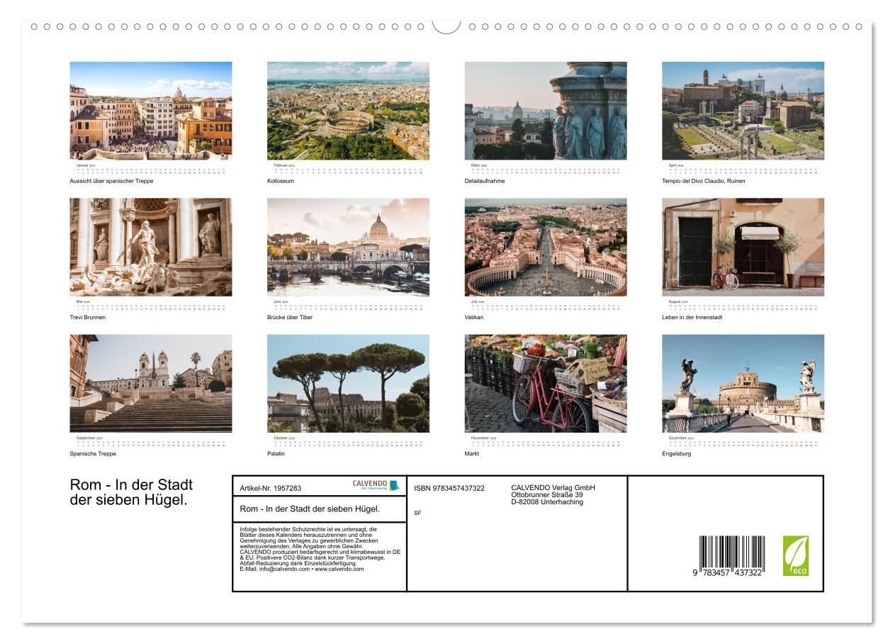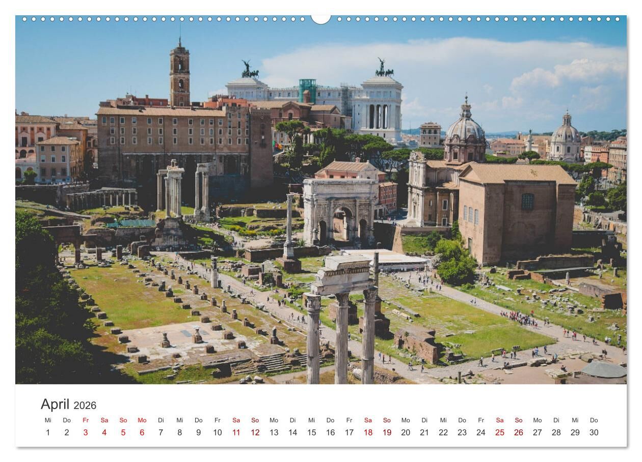Dieser Kalender zeigt zwölf unvergessliche Bilder von Rom. Holen Sie sich das Rom-Feeling direkt nach Hause.