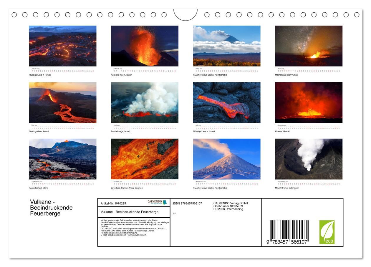 Vulkane sind atemberaubende Feuerberge und geben ein unglaubliches Fotomotiv ab. Mit diesem Kalender können Sie 12 beeindruckende Fotos von Vulkanen der ganzen Welt bestaunen.