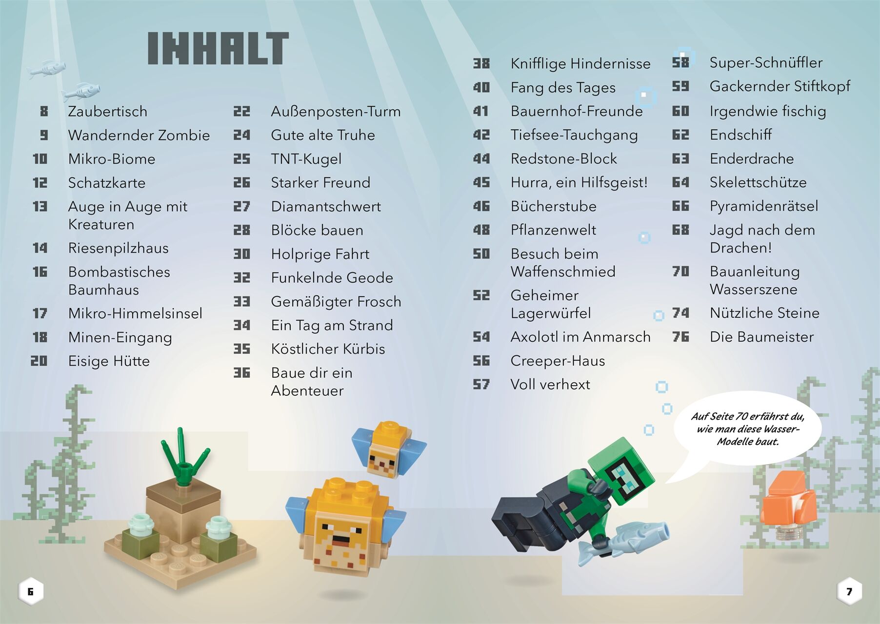 LEGO® Minecraft® Ideen Block für Block und Stein für Stein: Baue deine eigene LEGO® Minecraft Welt! • Über 50 LEGO® Minecraft Bauideen für Fans und Kinder ab 6 Jahren • Mit LEGO® Minecraft Minifigur und LEGO® Steinen für den Bau eines Unterwasser-Mod...