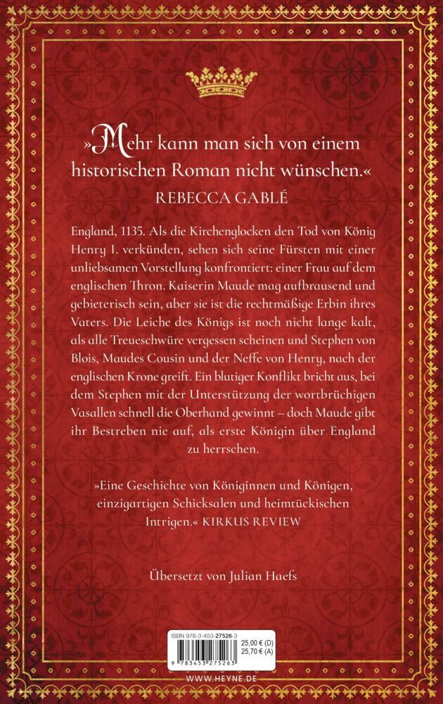 »Eine Geschichte von Königinnen und Königen, einzigartigen Schicksalen und heimtückischen Intrigen.« Kirkus Review England, 1135. Als die Kirchenglocken den Tod von König Henry I. verkünden, sehen sich seine Fürsten mit einer unliebsamen Vorstellung konfrontie...