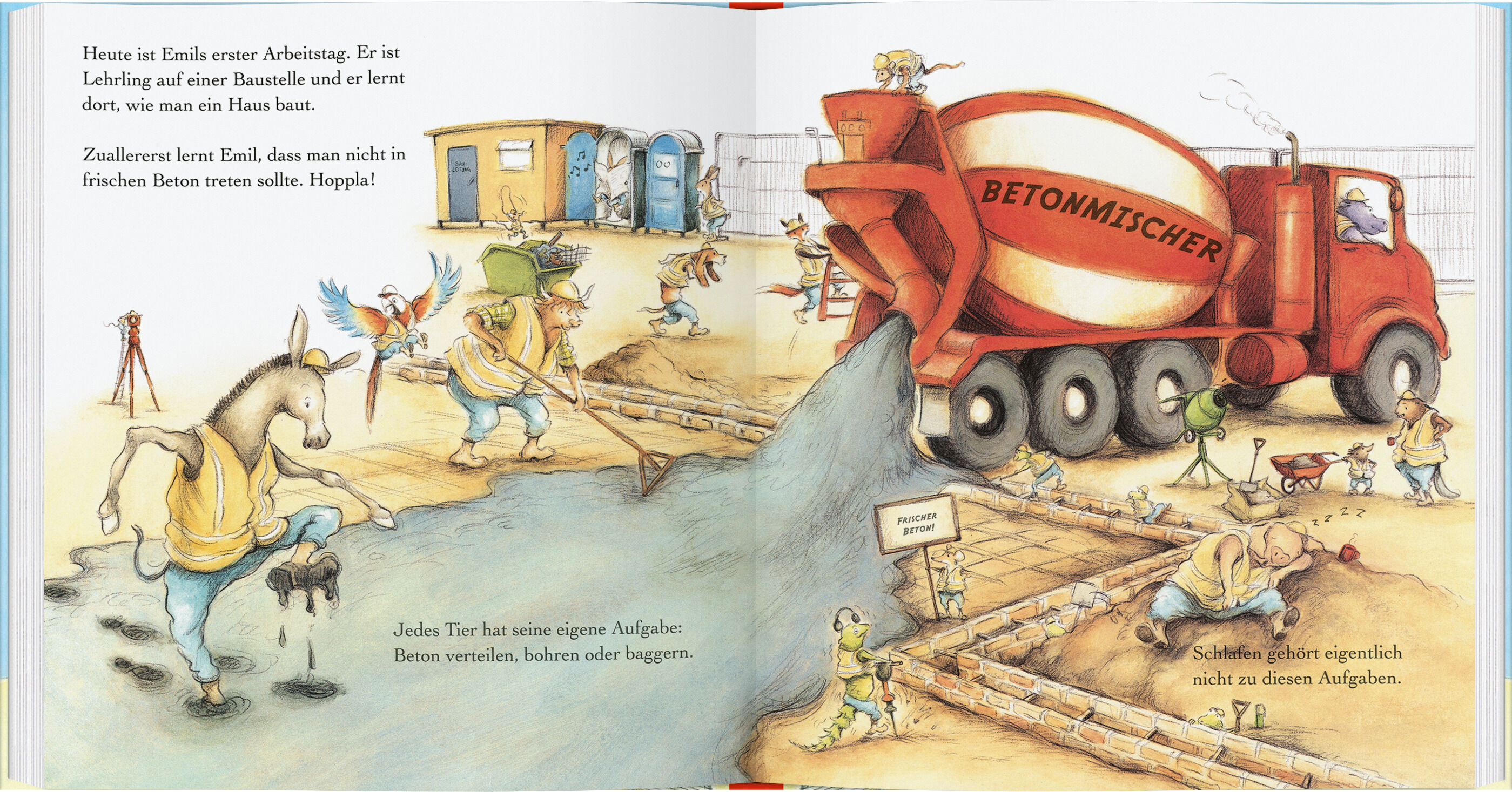 Mit Emil und seinen Kollegen lernen kleine Leser spielerisch, wie die Arbeit auf einer Baustelle aussieht. Ein fröhliches, buntes Bilderbuchabenteuer von Sharon Rentta. Heute ist Emils erster Tag als Lehrling auf der Baustelle! So eine Baustelle ist eine aufre...