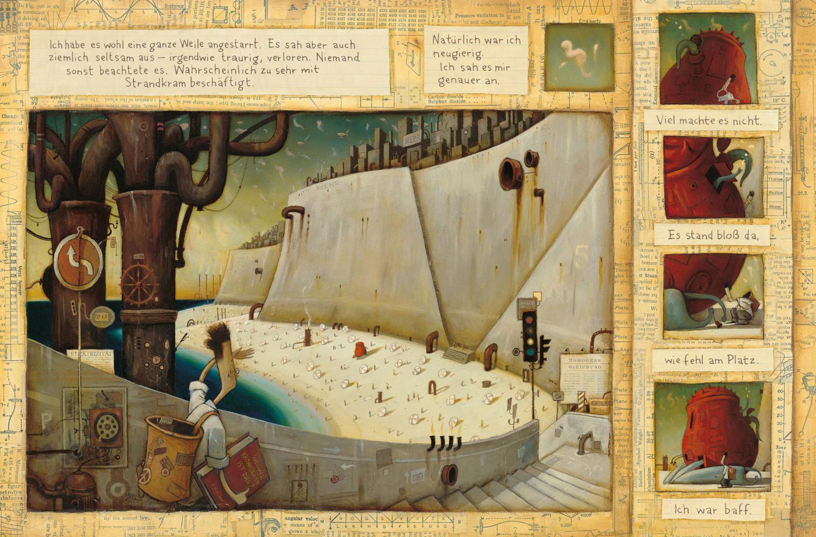 Vom Verlieren, Finden und Dazugehören Brillantes Werk des australischen Ausnahme-Künstlers Shaun Tan, der für den gleichnamigen Kurzfilm den Oscar gewann. Für Kinder und Erwachsene. Hätte er nicht zufällig am Strand nach Kronkorken gesucht, wäre ihm das seltsa...