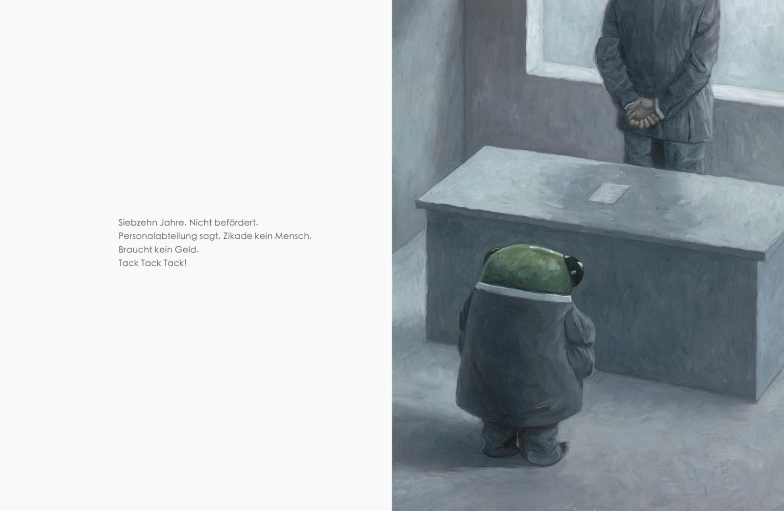 Ein neues geniales Bilderbuch des australischen Ausnahme-Künstlers Shaun Tan für Kinder und Erwachsene. Zikade lebt in einer sehr grauen Welt. Er ist Büroangestellter, seit siebzehn Jahren schon. Sein Arbeitsplatz: Eine Bürozelle im Großraumbüro. Seine Wohnun...