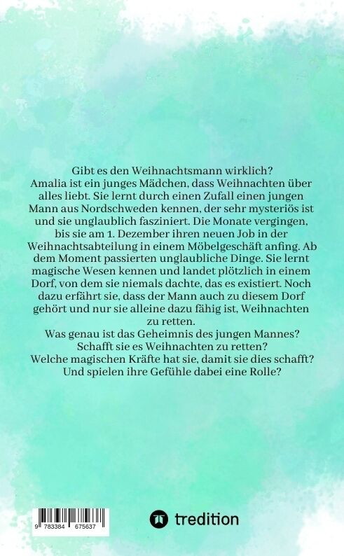 Amalia ist ein junges Mädchen, dass Weihnachten über alles liebt. Sie lernt durch einen Zufall einen jungen Mann aus Nordschweden kennen, der sehr mysteriös ist und sie unglaublich fasziniert. Die Monate vergingen, bis sie am 1. Dezember ihren neuen Job in der...