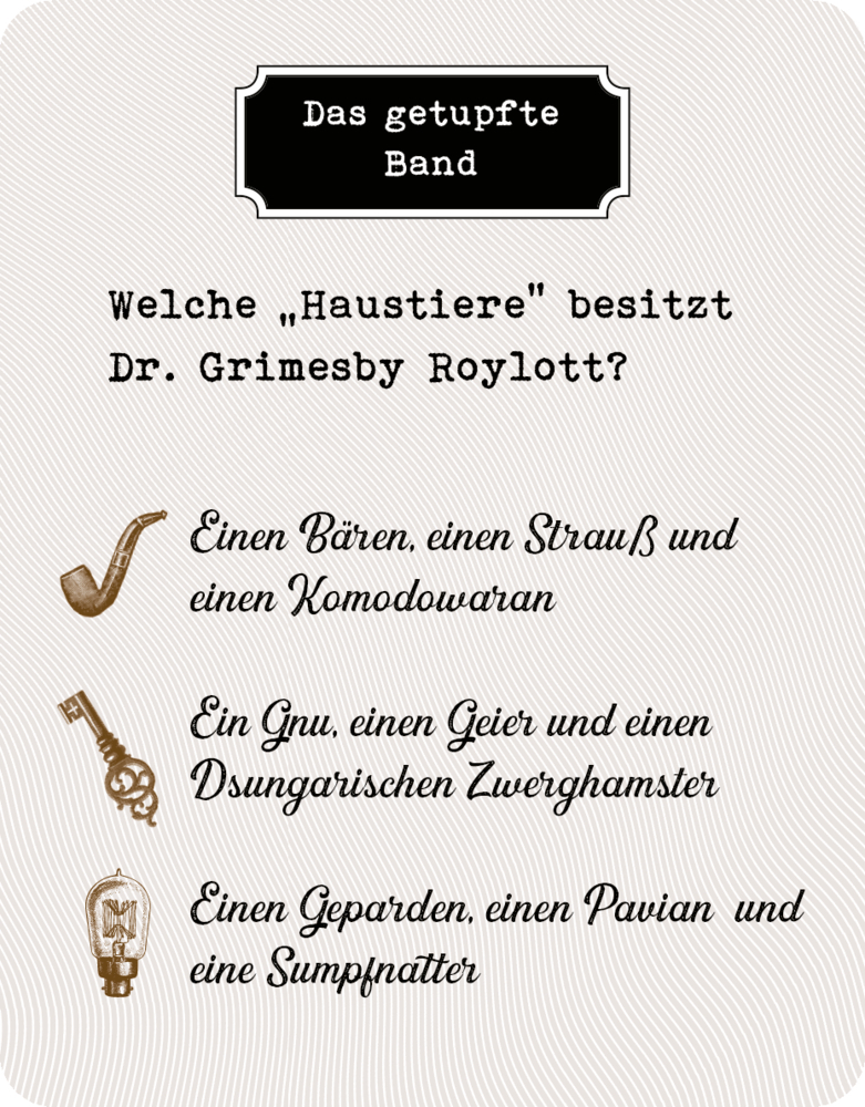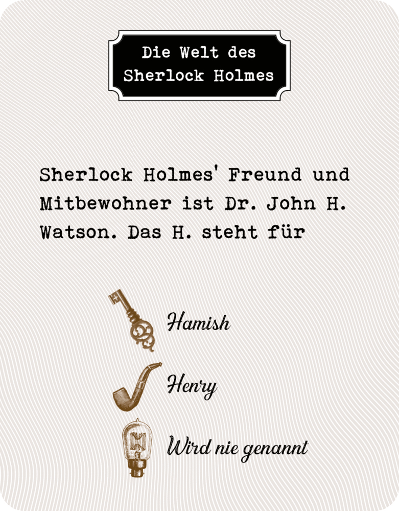 Der berühmteste Detektiv der Weltliteratur und seine Geschichten stecken voller Rätsel. Ob man es alleine oder in beliebig großen Gruppen spielt: 40 amüsante Fragen rund um das Universum von Sherlock Holmes und seinen Schöpfer Arthur Conan Doyle sowie spannend...