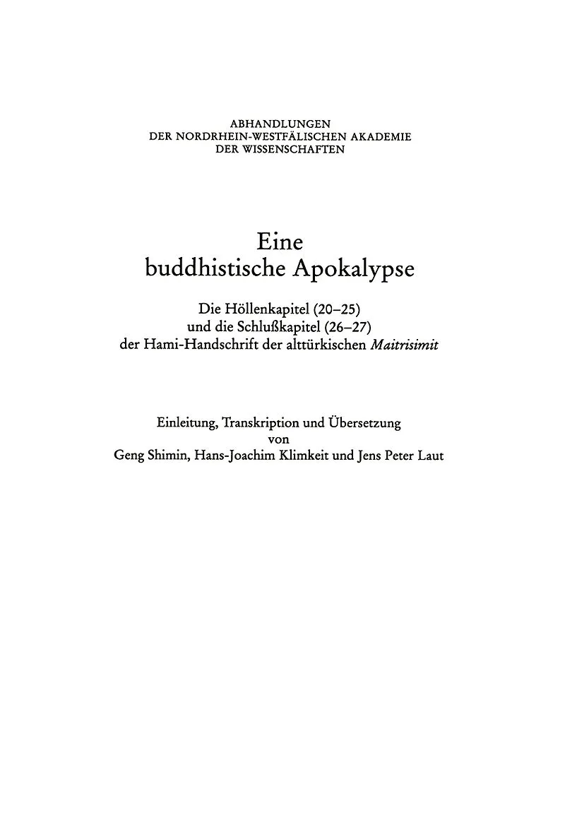 Die hier von uns vorgelegte Transkription und Ubersetzung der Kapitel 20-27 der Hami Handschrift der alttiirkischen Maitrisimit verfolgt vor allem zwei wissenschaftliche Ziele: Zum einen soll sie die turkologische Fachwelt mit weiterem Textmaterial eines der w...