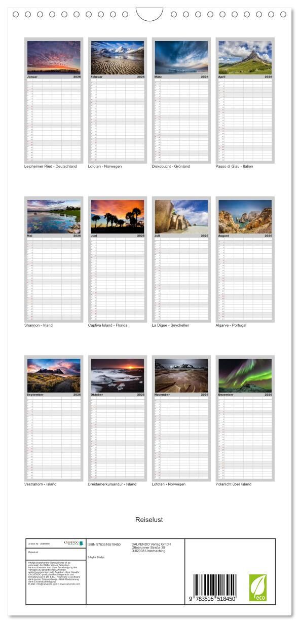 Familienplaner 2026 - Reiselust mit 5 Spalten (Wandkalender, 21 x 45 cm) CALVENDO
