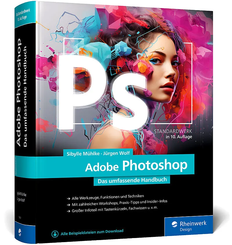 Das Standardwerk zu Photoshop zum Lernen und NachschlagenAuf über 1.000 Seiten vermitteln Ihnen Sibylle Mühlke und Jürgen Wolf in ihrem umfassenden Handbuch geballtes Photoshop-Wissen und erklären alle Werkzeuge und Funktionen der Software vom Öffnen einer Dat...Das Standardwerk zu Photoshop zum Lernen und NachschlagenAuf über 1.000 Seiten vermitteln Ihnen Sibylle Mühlke und Jürgen Wolf in ihrem umfassenden Handbuch geballtes Photoshop-Wissen und erklären alle Werkzeuge und Funktionen der Software vom Öffnen einer Datei bis hin zur Arbeit mit 3D und Video. Sie erhalten zahlreiche Tipps und Hintergrundinfos zur Adobe-Software, verstehen, welche Regler und Buttons Sie klicken müssen, und haben Ihre Software von A bis Z komplett im Griff.Alle wichtigen Themen erklären die Autoren anhand von Praxisbeispielen, die Sie Schritt für Schritt nachvollziehen können. Das benötigte Beispielmaterial können Sie selbstverständlich auf der Website des Verlags herunterladen. So steht perfekten Retuschen, professionellen Montagen und selbst digitalen Gemälden nichts mehr im Wege. Hier finden Sie als Einsteiger oder Fortgeschrittener immer genau das, was Sie brauchen!Alle Werkzeuge, Funktionen und TechnikenMit zahlreichen Workshops, Praxis-Tipps und Insider-InfosGroßer Infoteil mit Tastenkürzeln, Troubleshooting u. v. m.Aus dem Inhalt:Starthilfe für Neueinsteiger*innenBilder korrigieren und optimieren: Kontraste, Helligkeit und Schärfe, Farbkorrektur und Schwarzweiß, TonwertkorrekturRaw-Entwicklung mit Camera RawWeichzeichnung und SchärfentiefeHDR und PanoramenInhaltsbasierte Retusche, Bild- und Objektivfehler beheben, Perspektivkorrektur, FluchtpunktMalen mit Misch-Pinsel und Co.Texte und TextformatePhotoshop-Techniken: Masken, Auswahlen, Kanäle, Mischmodi, Ebenenstile, Filter, Smartobjekte, Pfade, FormwerkzeugeVideo- und 3D-BearbeitungAutomatisieren, FarbmanagementAusgabe für Druck und Web