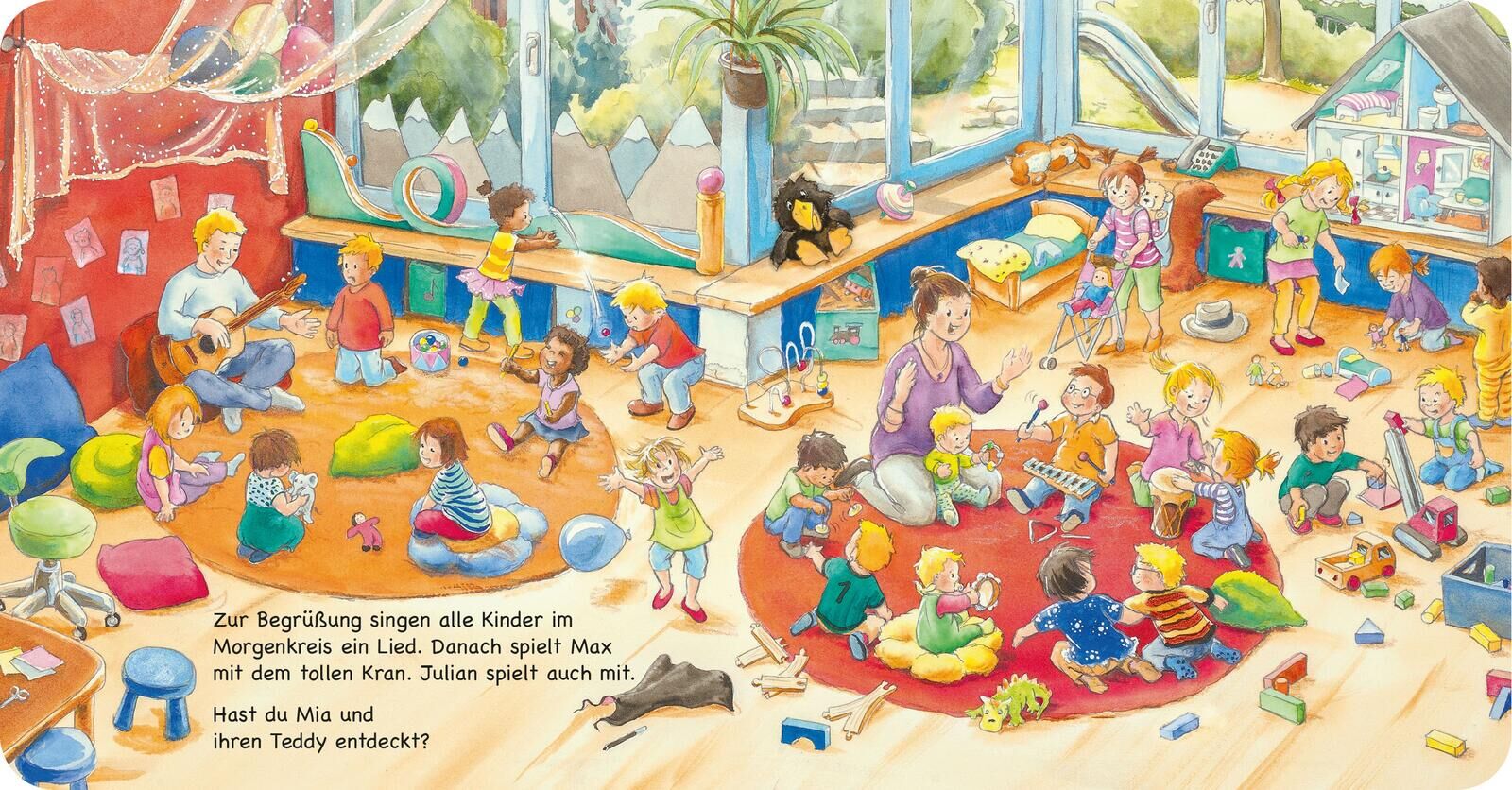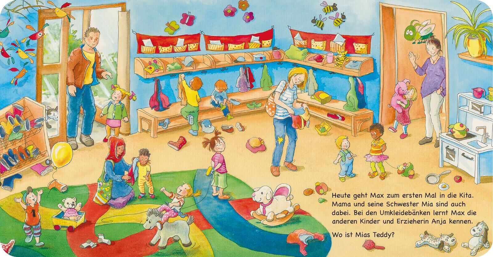 Mein erster Kita-Tag Wimmelspaß mit Max und Mia Robustes Mini-Wimmelbuch für kleine Kinderhände ideal für unterwegs Mit vielen Suchaufgaben rund um Morgenkreis, Mittagessen, Malen und mehr Fördert spielerisch die Sprachentwicklung, Konzentration und den Worts...