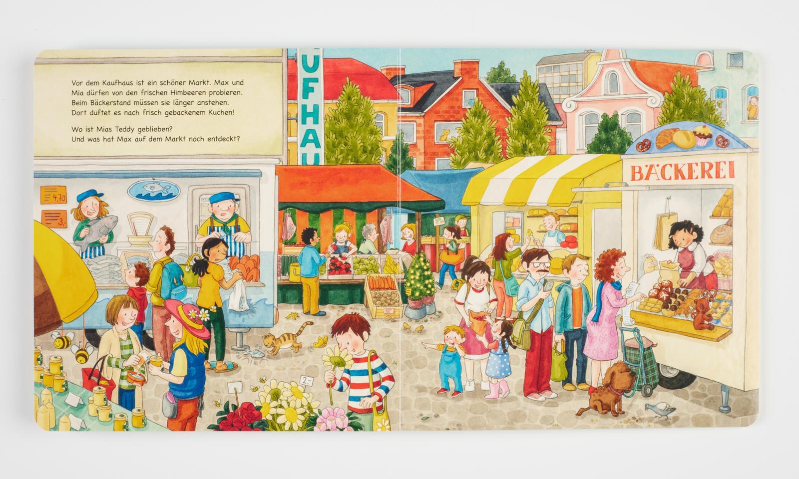 Ein allererstes Wimmelbuch über die Stadt für Kinder ab 2 Jahren. Mit Max und Mia geht es heute in die Stadt! Auf ihrer Entdeckungstour mit Mama über den Markt, im Park, im großen Kaufhaus und natürlich auch an einer Baustelle vorbei können kleine Betrachter ...