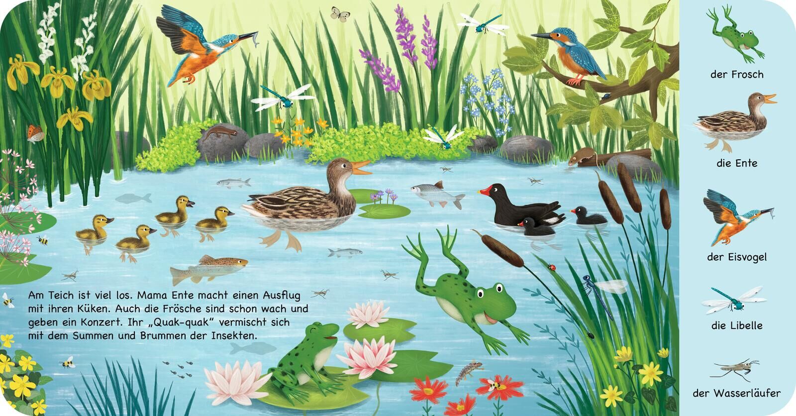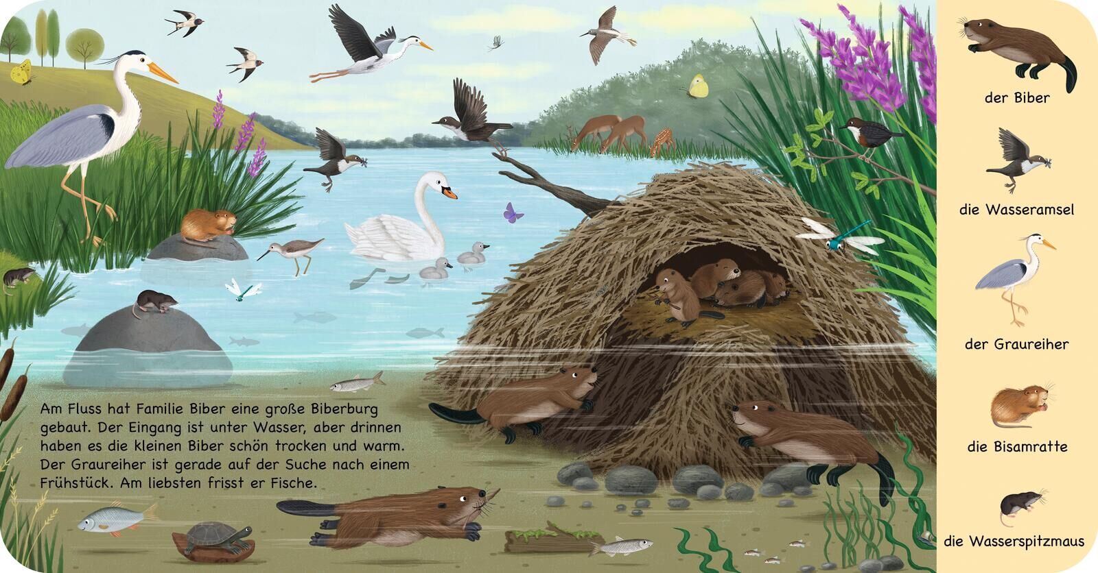 Hier erfährt man alles über die spannende Welt der heimischen Wassertiere . So viele Tiere tummeln sich am und im Wasser ! Frösche und Enten kennen Kinder schon, aber wie sieht ein Fischotter aus oder ein Waschbär? Und wie unterscheidet sich der Teich vom See...