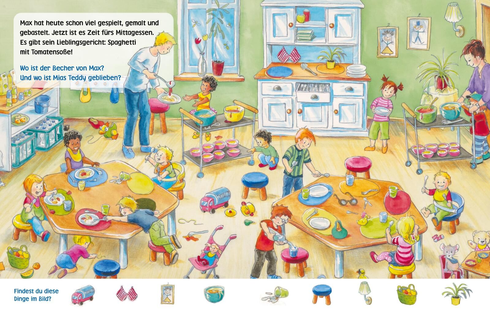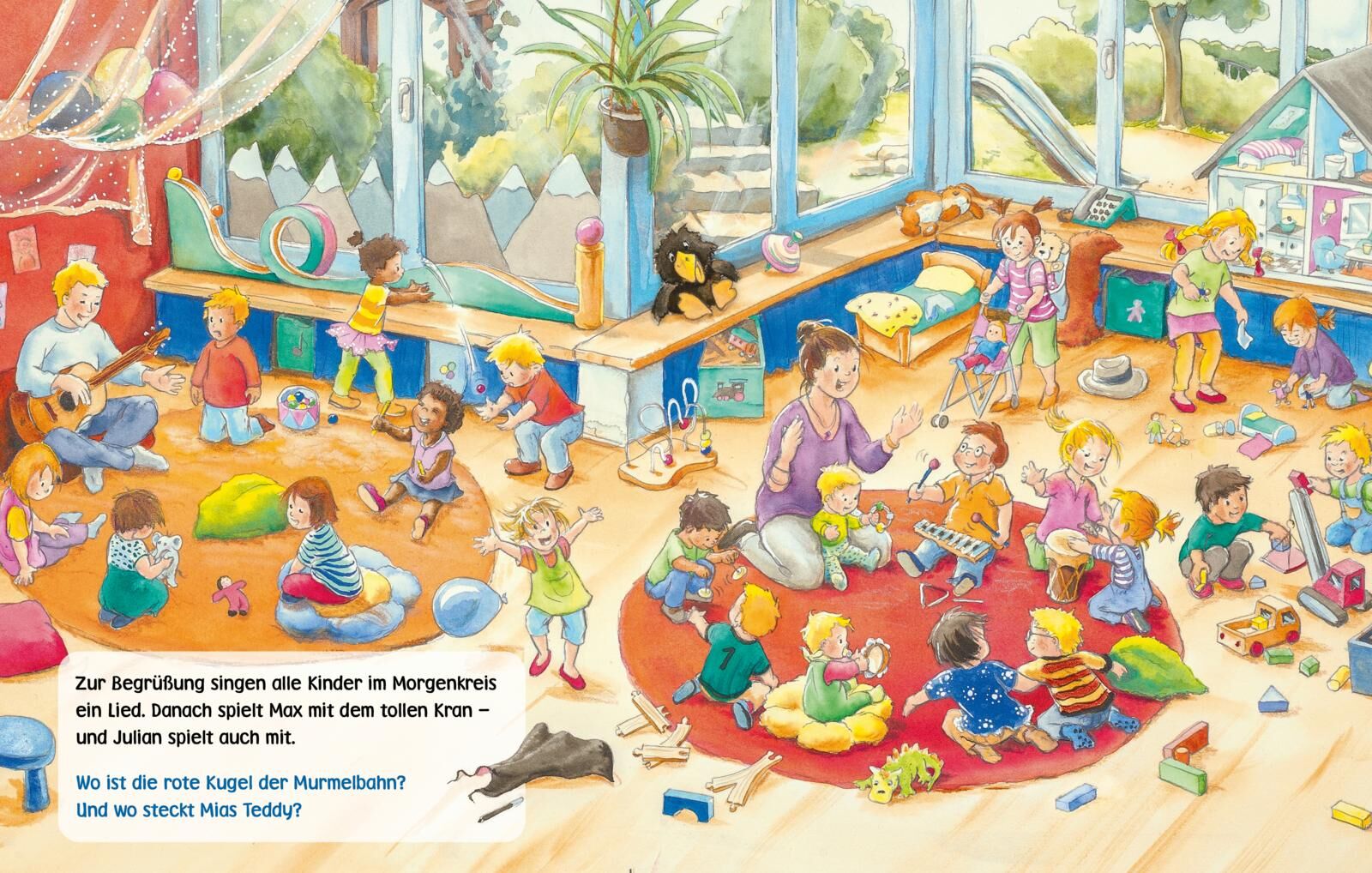 In der Kita ist es ganz schön aufregend: Welche anderen Kinder warten dort schon? Was kann man alles spielen oder basteln? Und wo hat sich eigentlich der kleine Teddy versteckt? Ein erstes Wimmelbuch zum Suchen, Finden und Weitererzählen. Für alle Baby-Pixi-F...