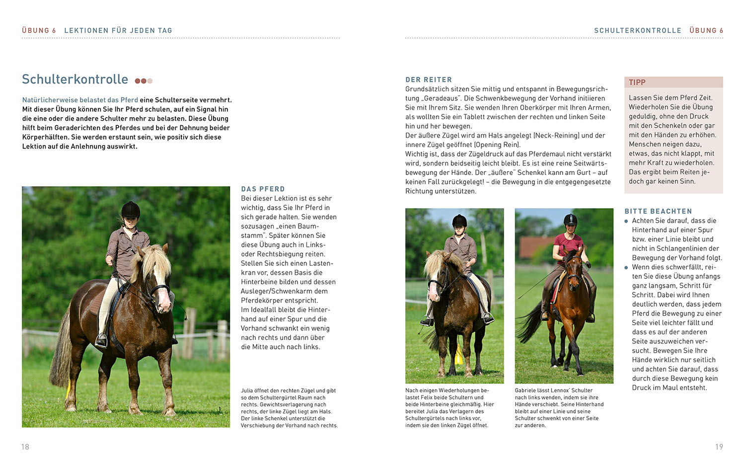 Das Buch stellt abwechslungsreiche Lektionen vor, die helfen die Reitstunde zu strukturieren und sich immer wieder neue Schwerpunkte zu setzen. Ein vielseitiges Trainingsbuch für alle Reiter, die in der Ausbildung vorankommen und ihr Pferd gymnastizieren, moti...