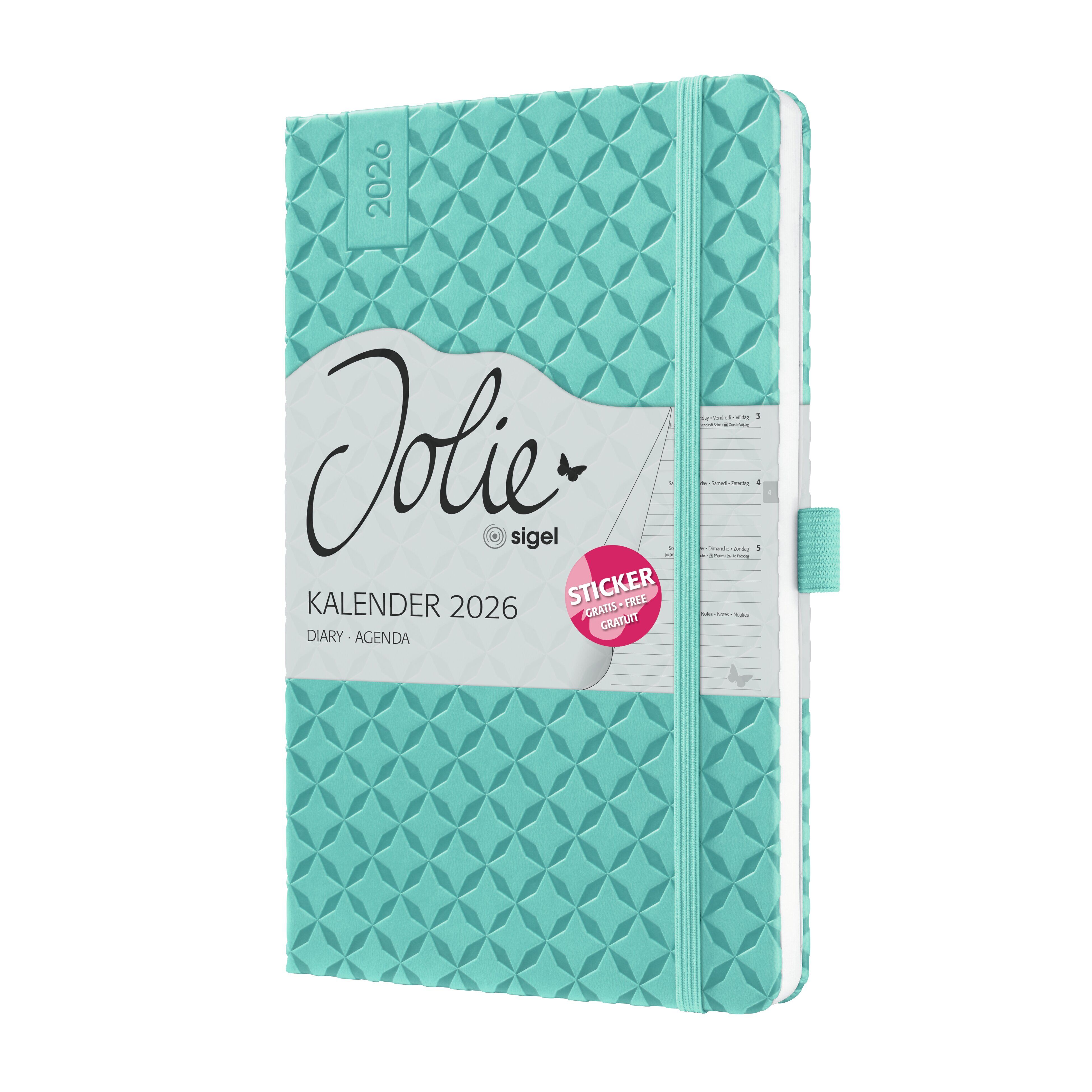 Immer stylisch organisiert - mit dem angesagten Jolie Wochenkalender für 2026 (Kalendarium: 2 Seiten = 1 Woche, DE/GB/FR/NL) im Format ca. A5 (13,50 x 20,30 x 1,60 cm) mit 174 Seiten (davon 12 Blätter perforiert). Der stabile Hardcover-Einband in petrolblau ga...