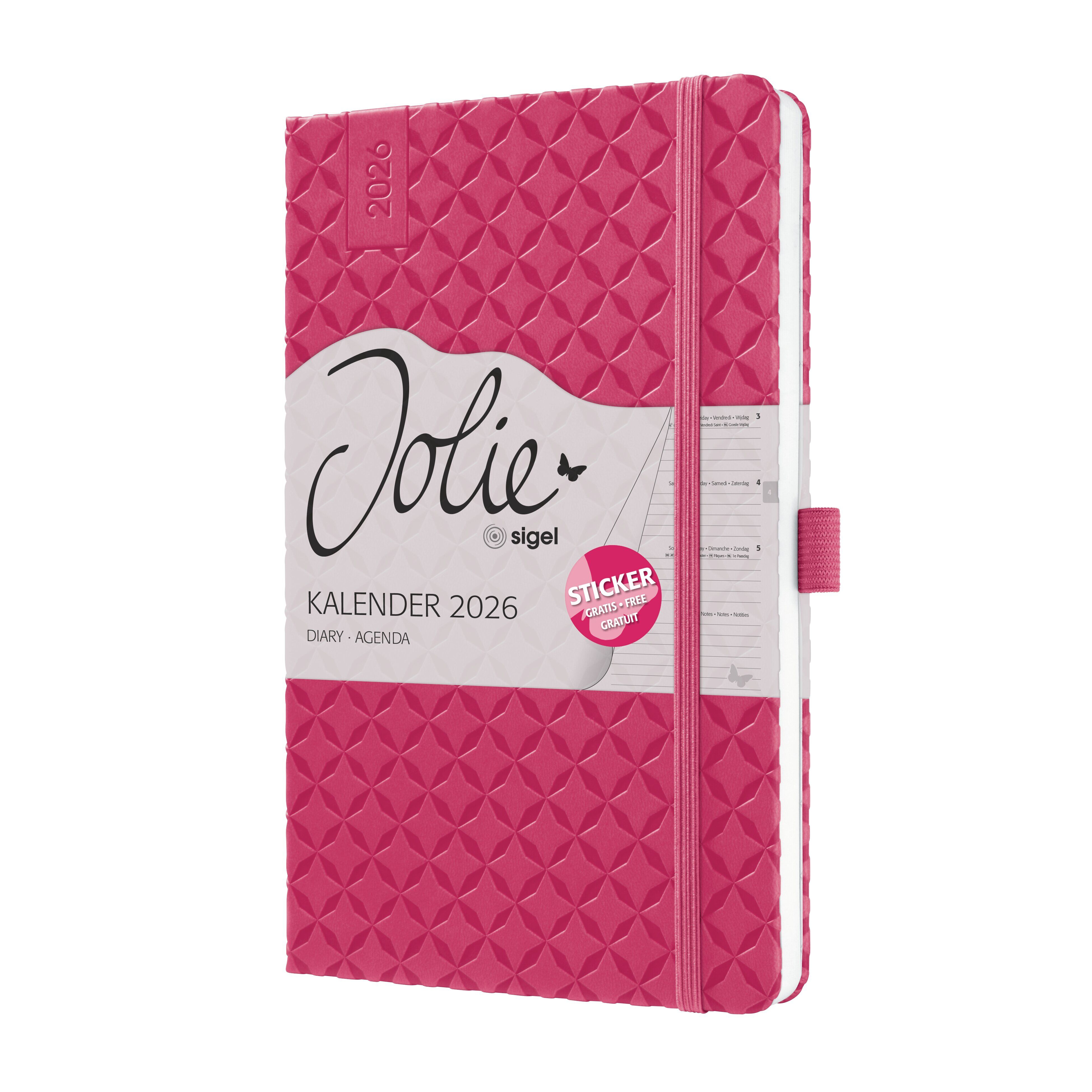 Immer stylisch organisiert - mit dem angesagten Jolie Wochenkalender für 2026 (Kalendarium: 2 Seiten = 1 Woche, DE/GB/FR/NL) im Format ca. A5 (13,50 x 20,30 x 1,60 cm) mit 174 Seiten (davon 12 Blätter perforiert). Der stabile Hardcover-Einband in pink garantie...
