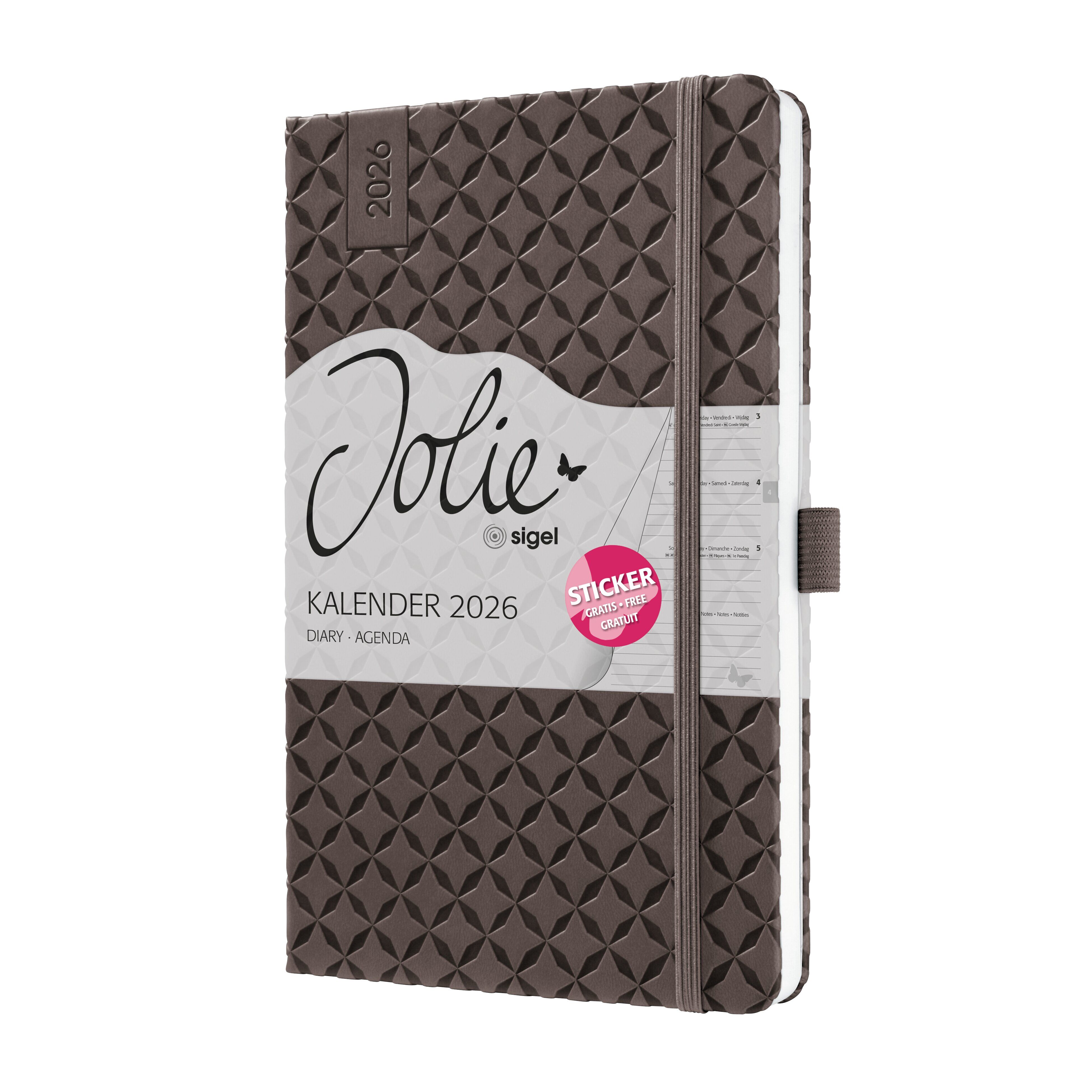 Immer stylisch organisiert - mit dem angesagten Jolie Wochenkalender für 2026 (Kalendarium: 2 Seiten = 1 Woche, DE/GB/FR/NL) im Format ca. A5 (13,50 x 20,30 x 1,60 cm) mit 174 Seiten (davon 12 Blätter perforiert). Der stabile Hardcover-Einband in braun garanti...