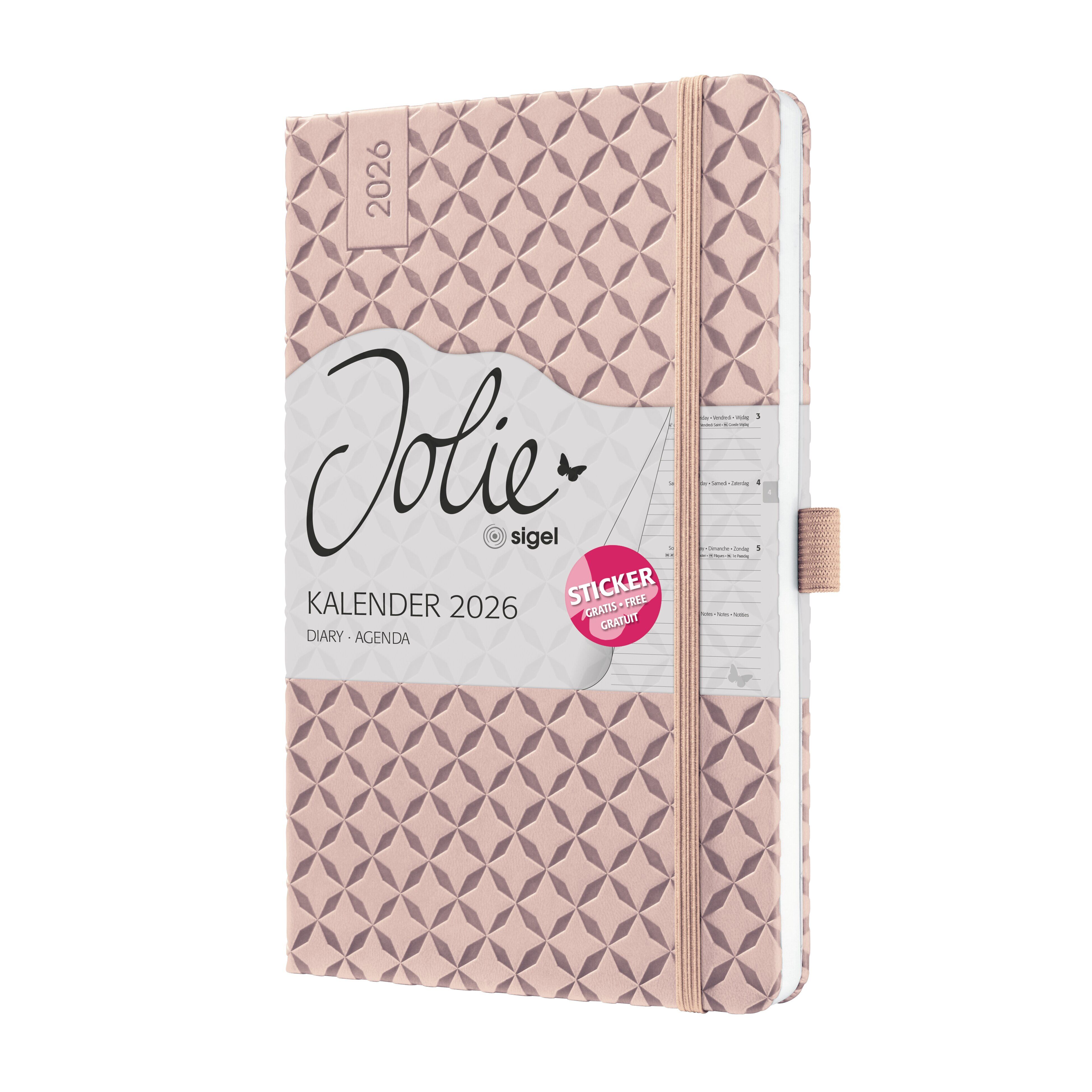 Immer stylisch organisiert - mit dem angesagten Jolie Wochenkalender für 2026 (Kalendarium: 2 Seiten = 1 Woche, DE/GB/FR/NL) im Format ca. A5 (13,50 x 20,30 x 1,60 cm) mit 174 Seiten (davon 12 Blätter perforiert). Der stabile Hardcover-Einband in rosé garantie...