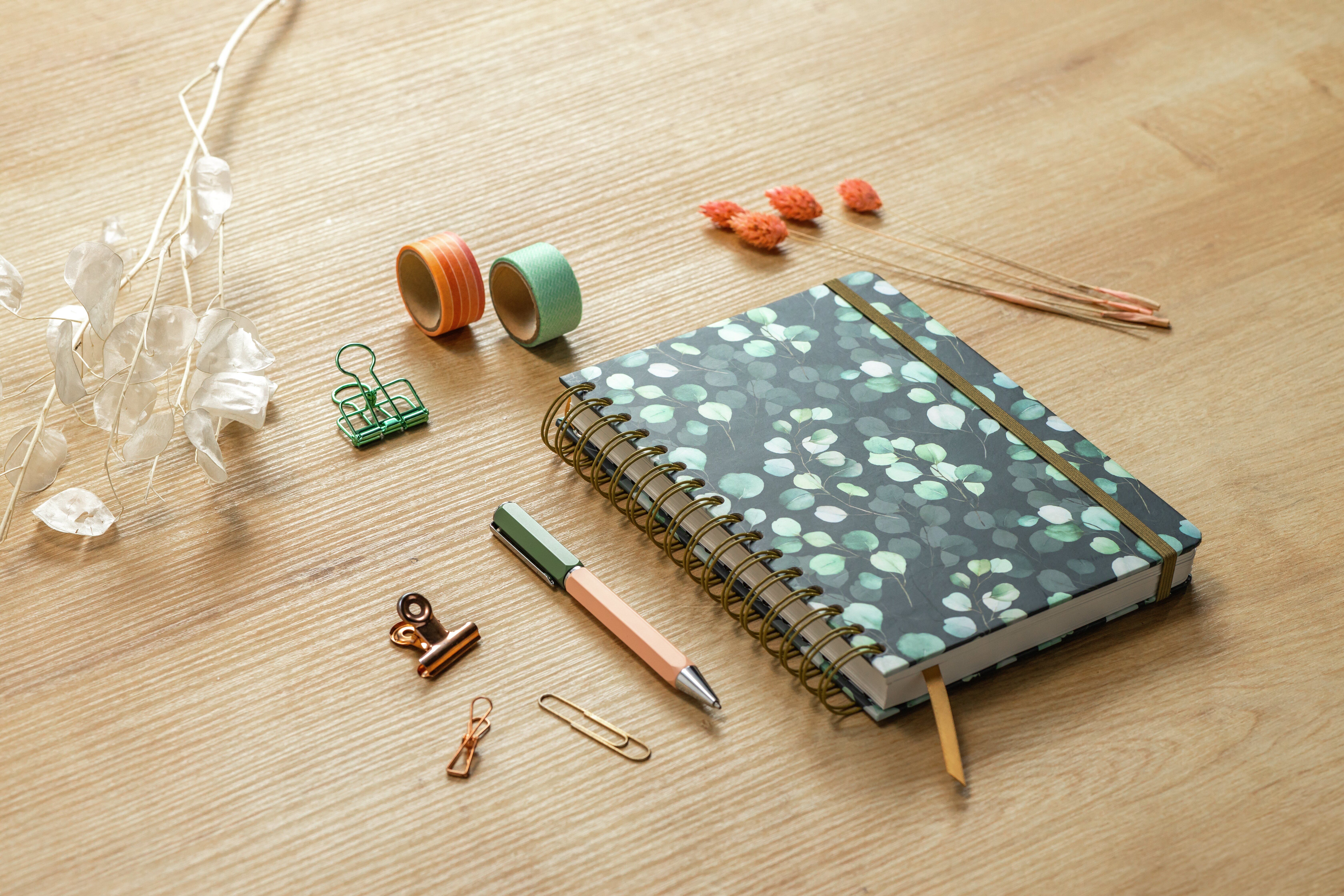 Werden Sie Handlettering-Profi - mit dem schönen Jolie Spiral-Notizbuch "Eucalyptus Night" im Format ca. A5 (16,80 x 21,50 x 2,80 cm) mit 240 Seiten (dotted, 120 g/m², alle Blätter perforiert). Der stabile Hardcover-Einband in mintgrün/schwarz/gold garantiert ...