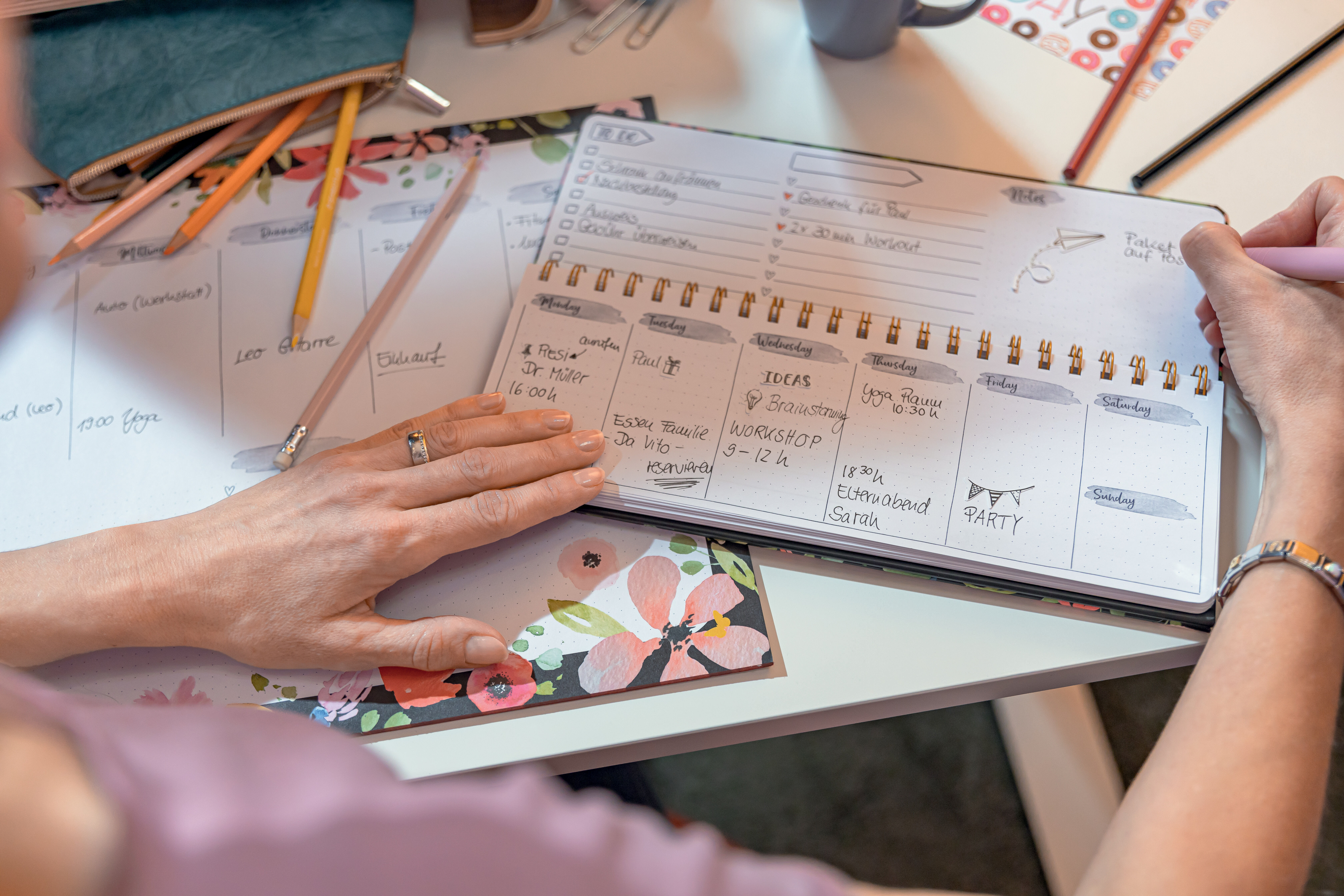Kreativ terminieren und organisieren - mit dem schicken Wochenplaner Jolie "Glittery Joy" undatiert (Kalendarium: 2 Seiten = unten Woche / oben Planungsseite, GB) im Format 1/2 A4 quer (30 x 11,40 x 1,70 cm) mit 124 Seiten (100 g/m²). Der stabile Hardcover-Ein...