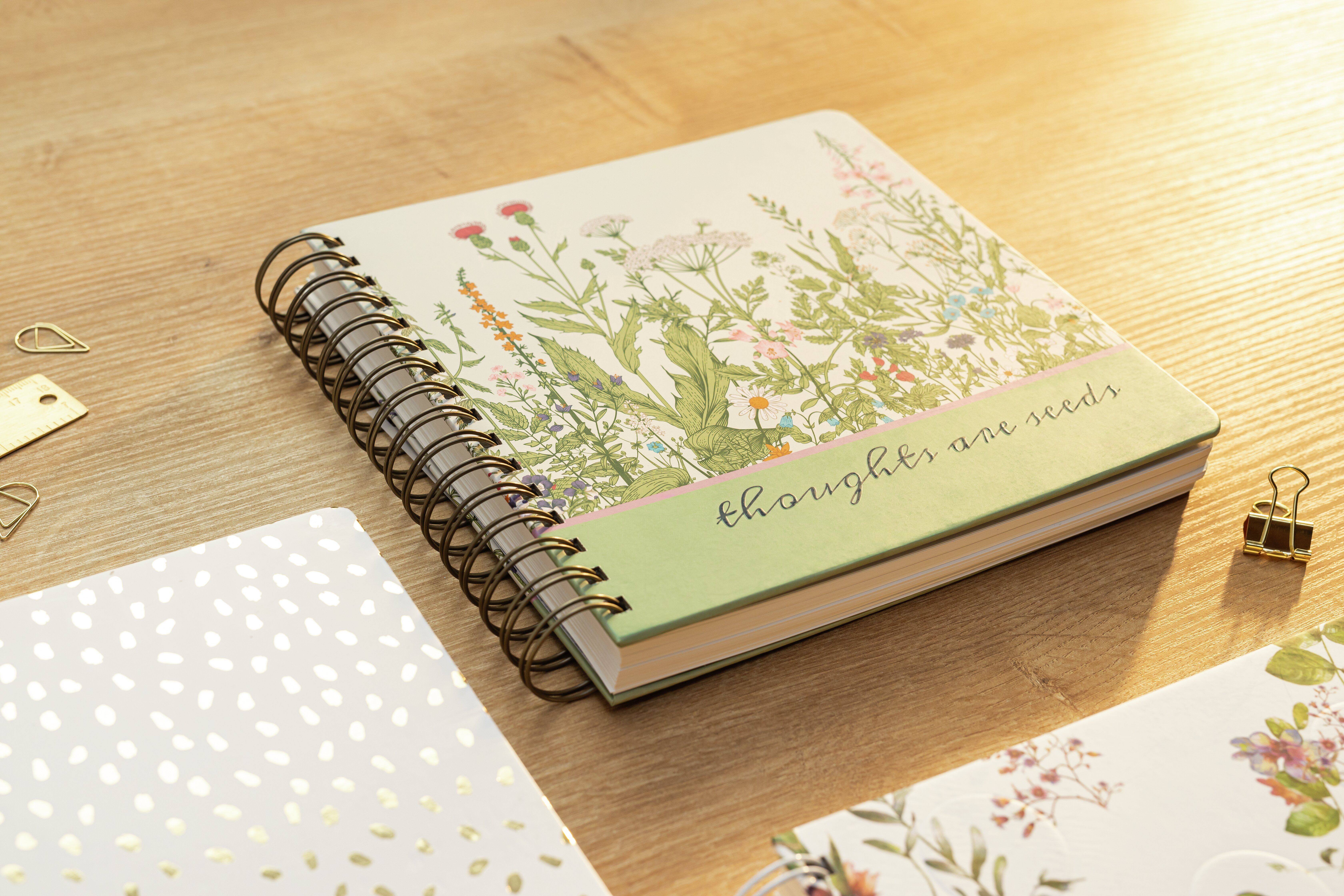 Für Handlettering-Profis oder kreative Köpfe: das schöne Jolie Spiral-Notizbuch "Wild Herbs" im Format 23,40 x 21,50 x 3,30 cm mit 240 Seiten (dotted, 120 g/m²). Der stabile Hardcover-Einband in lindgrün/hellgrau/rosa/orange garantiert Stabilität beim Schreibe...