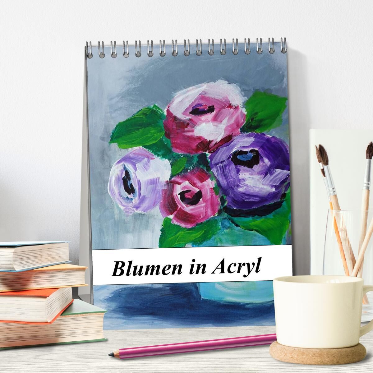 Blumen in Acryl (Tischkalender 2026 DIN A5 hoch), CALVENDO Monatskalender