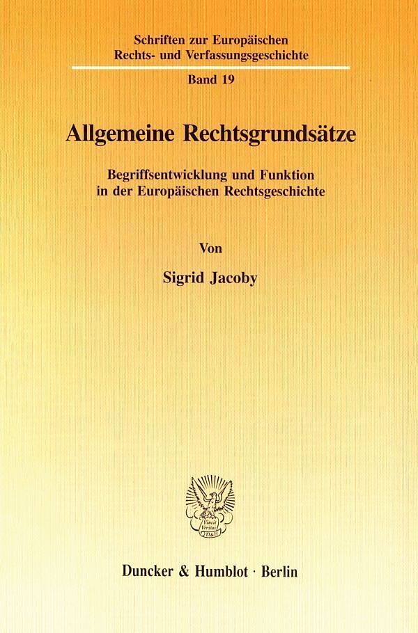 Inhaltsübersicht: Einleitung - I. Kapitel: Allgemeine Rechtsgrundsätze im droit français und ius germanicum seit dem ausgehenden 17. Jahrhundert sowie der Gesetzgebungswissenschaft des 18. Jahrhunderts - II. Kapitel: Die naturrechtlichen Kodifikationen - III. Kapitel: Die Rechtsfindungsregeln der naturrechtlichen Gesetzbücher in der Judikatur Österreichs, Preußens und Frankreichs - IV. Kapitel: Allgemeine Rechtsgrundsätze in der Historischen Schule des 19. Jahrhunderts in Deutschland und die Einflüsse auf Frankreich - IV. Kapitel: Allgemeine Rechtsgrundsätze im Völkerrecht - VI. Kapitel: Allgemeine Rechtsgrundsätze im Europäischen Gemeinschaftsrecht - VII. Kapitel: Zusammenfassung - Literaturverzeichnis - Sach- und Personenregister