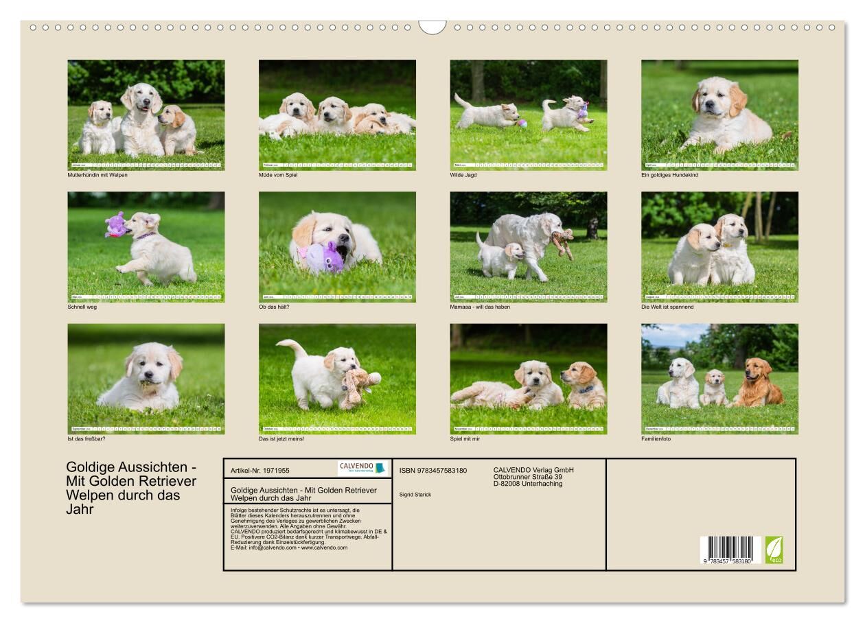 Goldige Aussichten - Mit Golden Retriever Welpen durch das Jahr (Wandkalender 2026 DIN A2 quer), CALVENDO Monatskalender