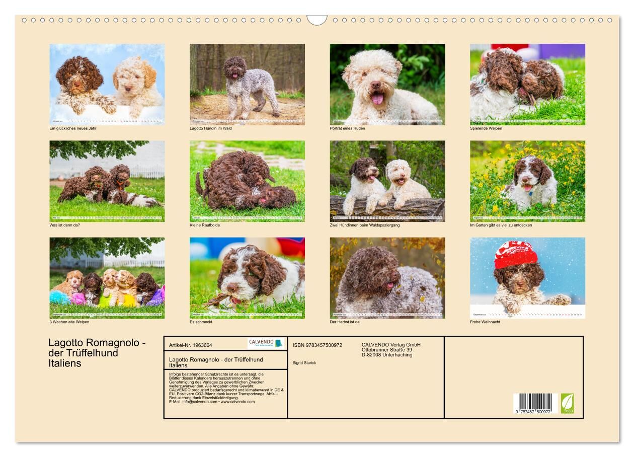 Lagotto Romagnolo - der Trüffelhund Italiens (Wandkalender 2026 DIN A2 quer), CALVENDO Monatskalender
