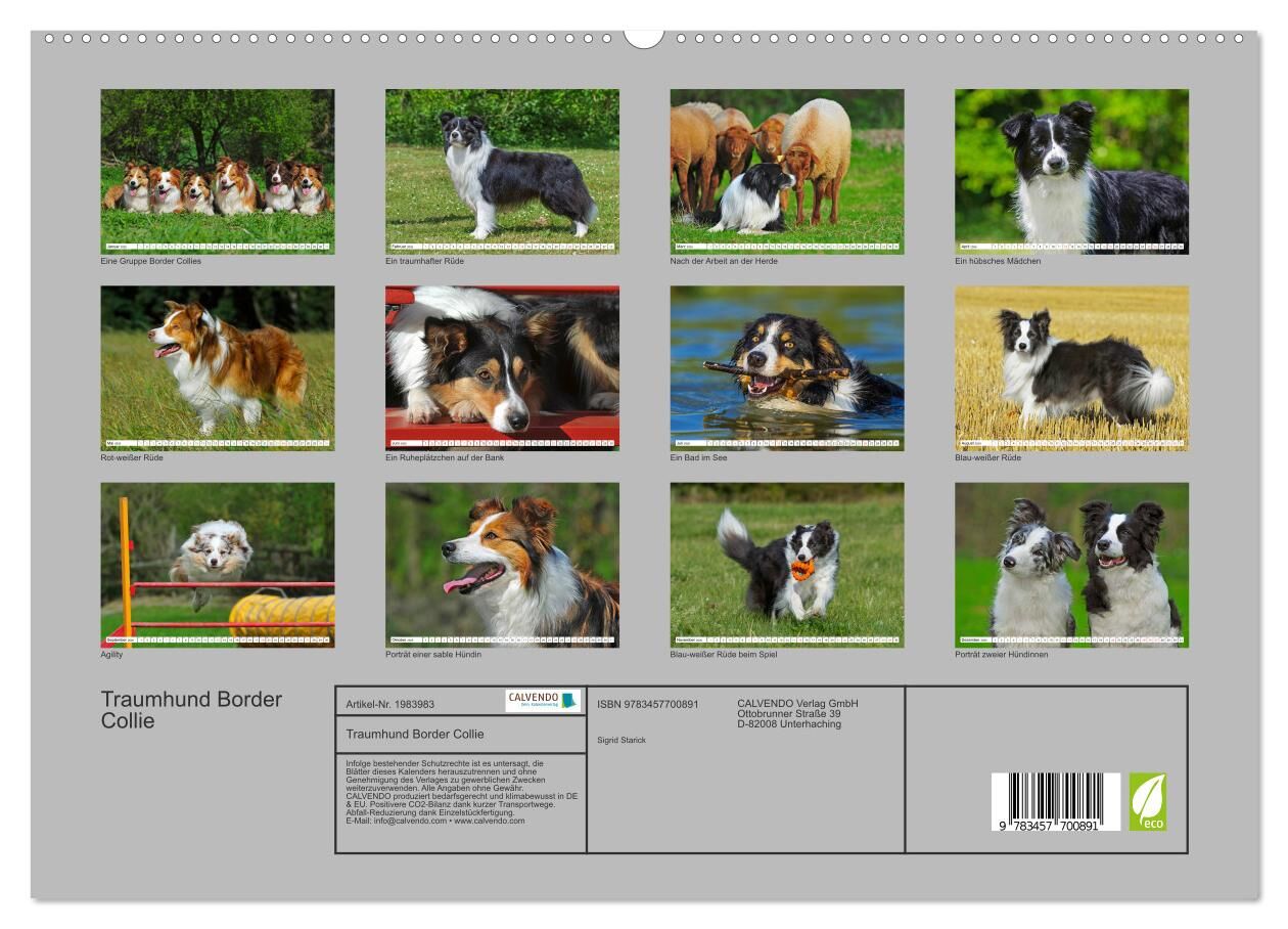 Traumhund Border Collie (hochwertiger Premium Wandkalender 2026 DIN A2 quer), Kunstdruck in Hochglanz