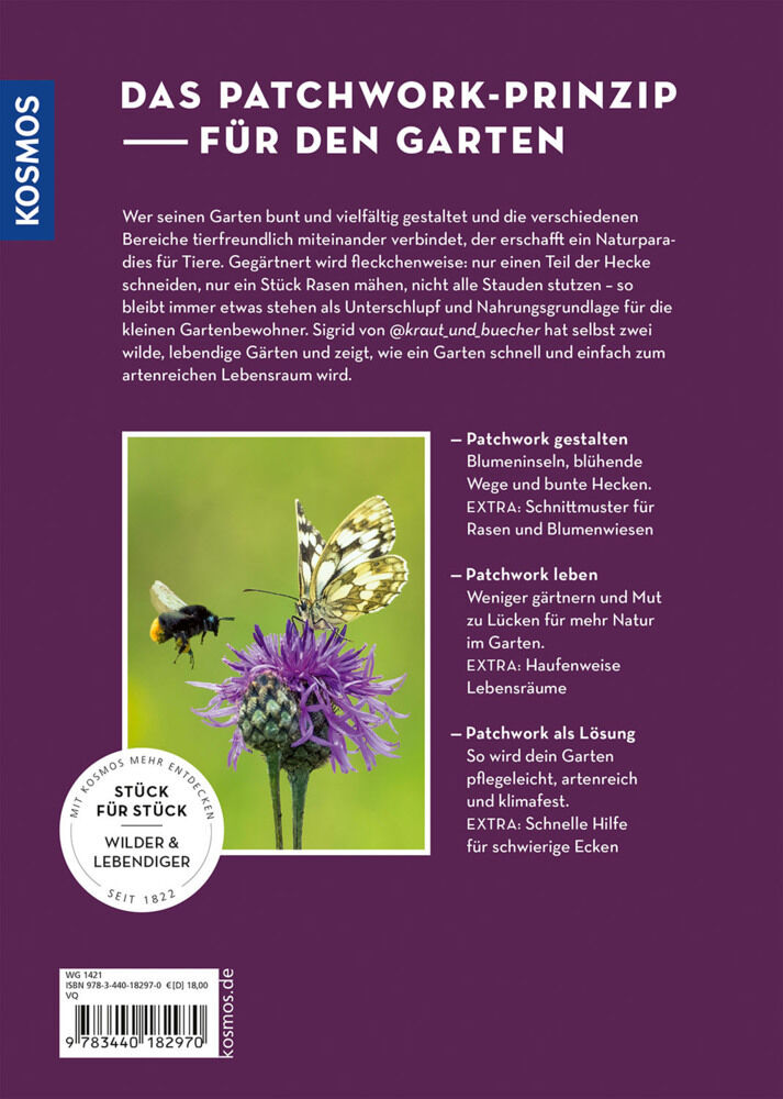 Mit Patchwork-Gärtnern führt Sigrid Tinz in ein spannendes Prinzip des Gärtnerns ein, das nicht nur den Aufwand reduziert, sondern auch für mehr Artenvielfalt sorgt: Nicht alles auf einmal bearbeiten, mähen oder schneiden, sondern Stück für Stück Inseln, Hecke...