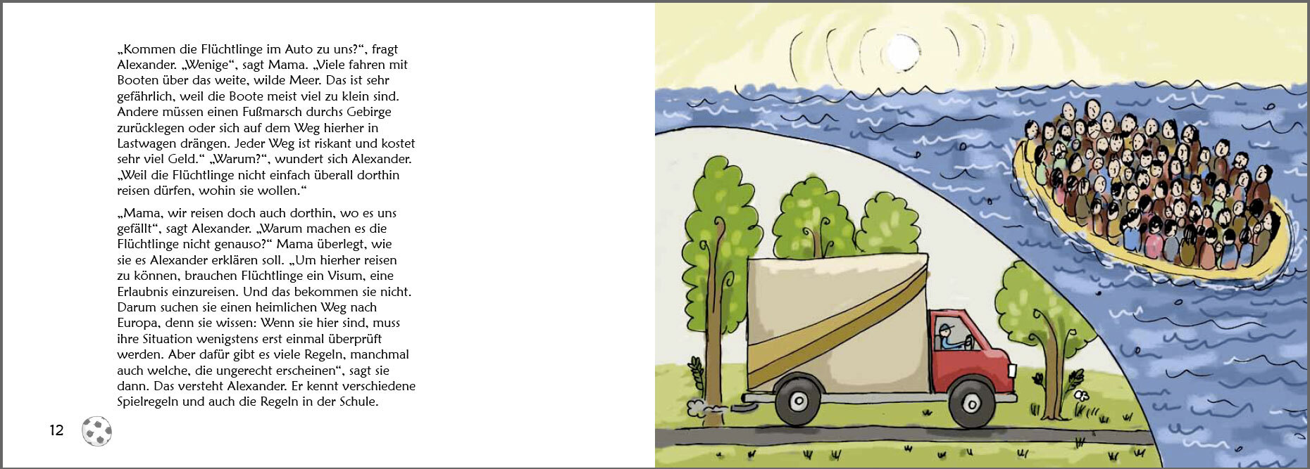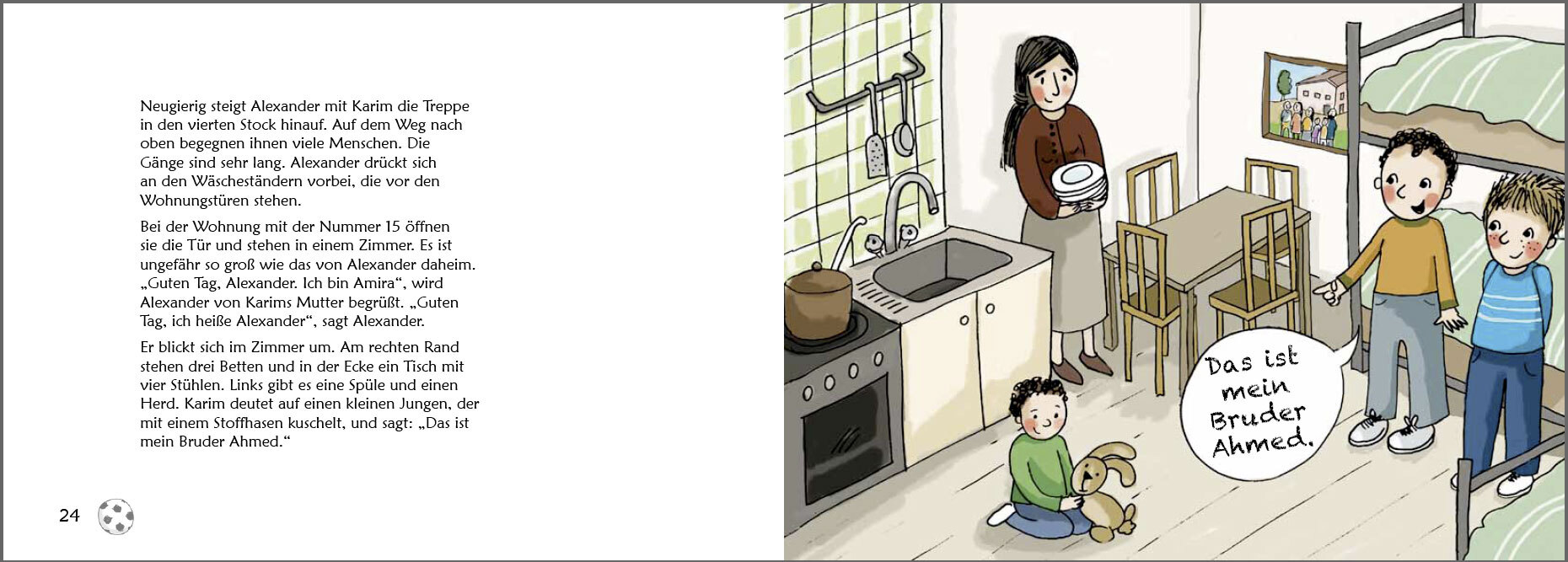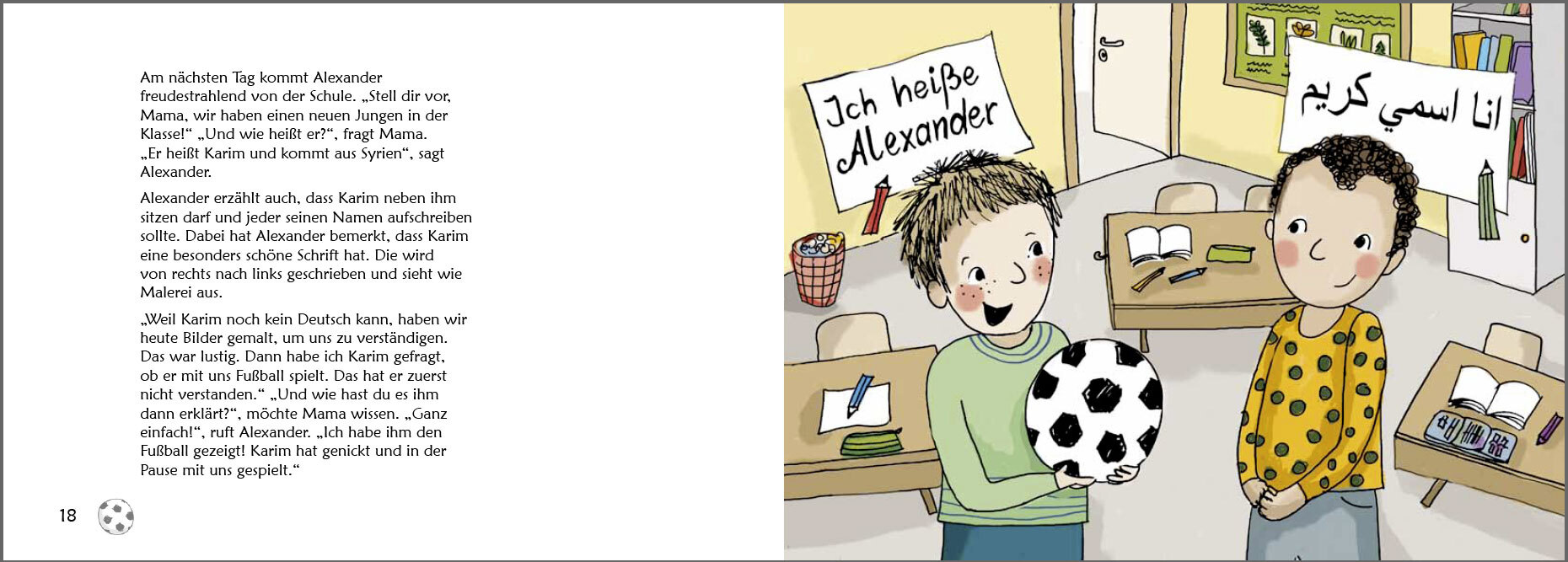 Alexander und Karim sind schon beste Freunde. Und das, obwohl Karim erst vor Kurzem in Alexanders Klasse gekommen ist. Weil Krieg war, musste Karim von zu Hause fliehen. Jetzt wohnt er mit seiner Mama und seinem kleinen Bruder im Flüchtlingsheim. Doch eines Ta...