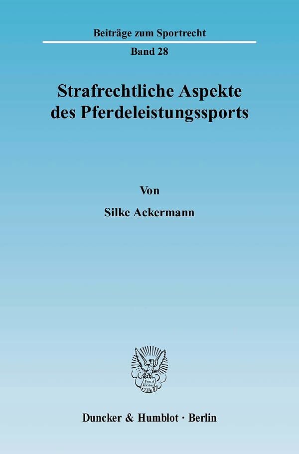 Kern der vorliegenden Untersuchung ist die Strafbarkeit des Dopings im Reitsport. Nach kurzer geschichtlicher und begrifflicher Einführung in das Thema beschäftigt sich die Verfasserin hauptsächlich mit der Frage, ob bei Manipulationen durch Mitbewerber eine B...