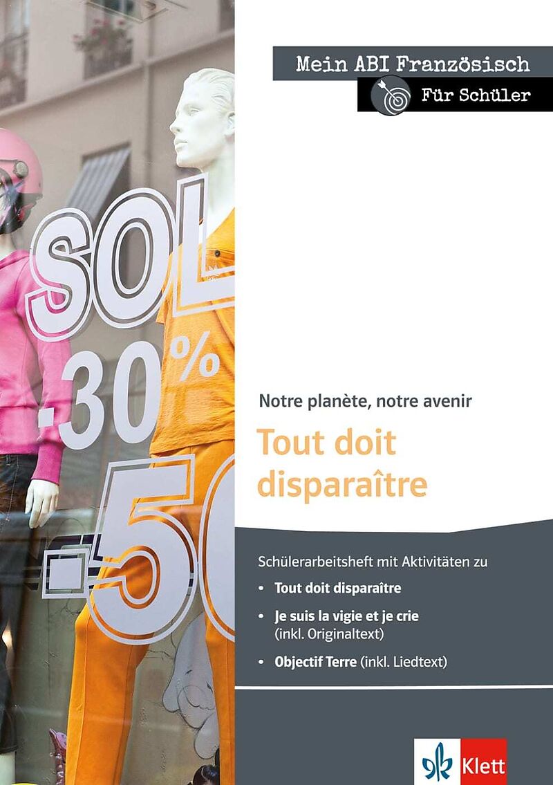 Mein Thema - Mein Niveau Das Arbeitsheft erarbeitet das Abithema Notre planète, notre avenir auf Basis des Romans Tout doit disparaître und weiterer Texte wie die Kurzgeschichte Je suis la vigie et je crie sowie das Lied Objectif Terre, die beide innen abgedru...