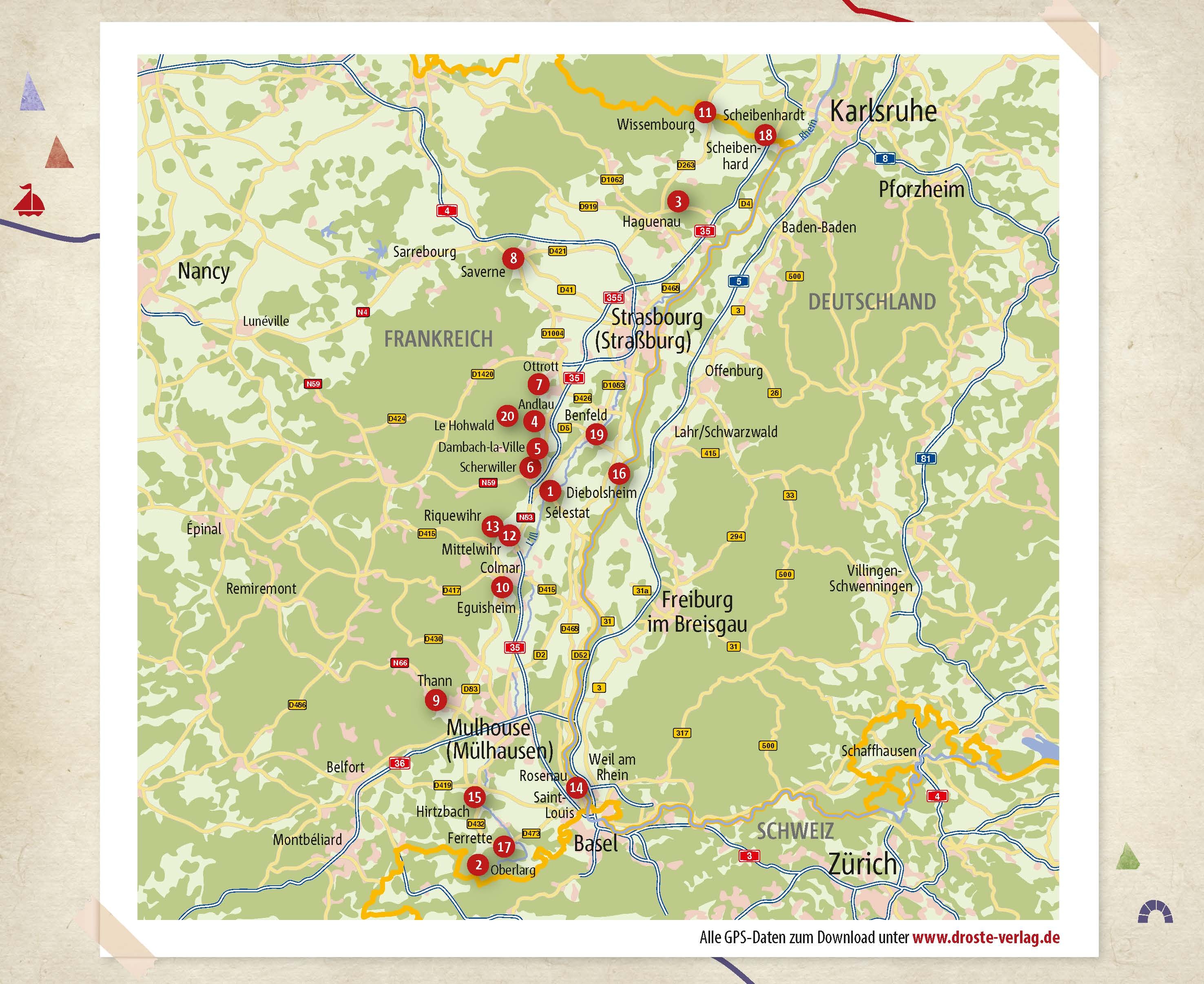 Fantastische Sandsteinfelsen, beeindruckende Burgruinen, sonnenverwöhnte Weinberge und zauberhafte Auenwälder: Das Elsass bietet zwischen den Ausläufern der Vogesen und dem Rhein eine Fülle von unterschiedlichsten Naturräumen. Ob auf dem markanten Rocher du Br...