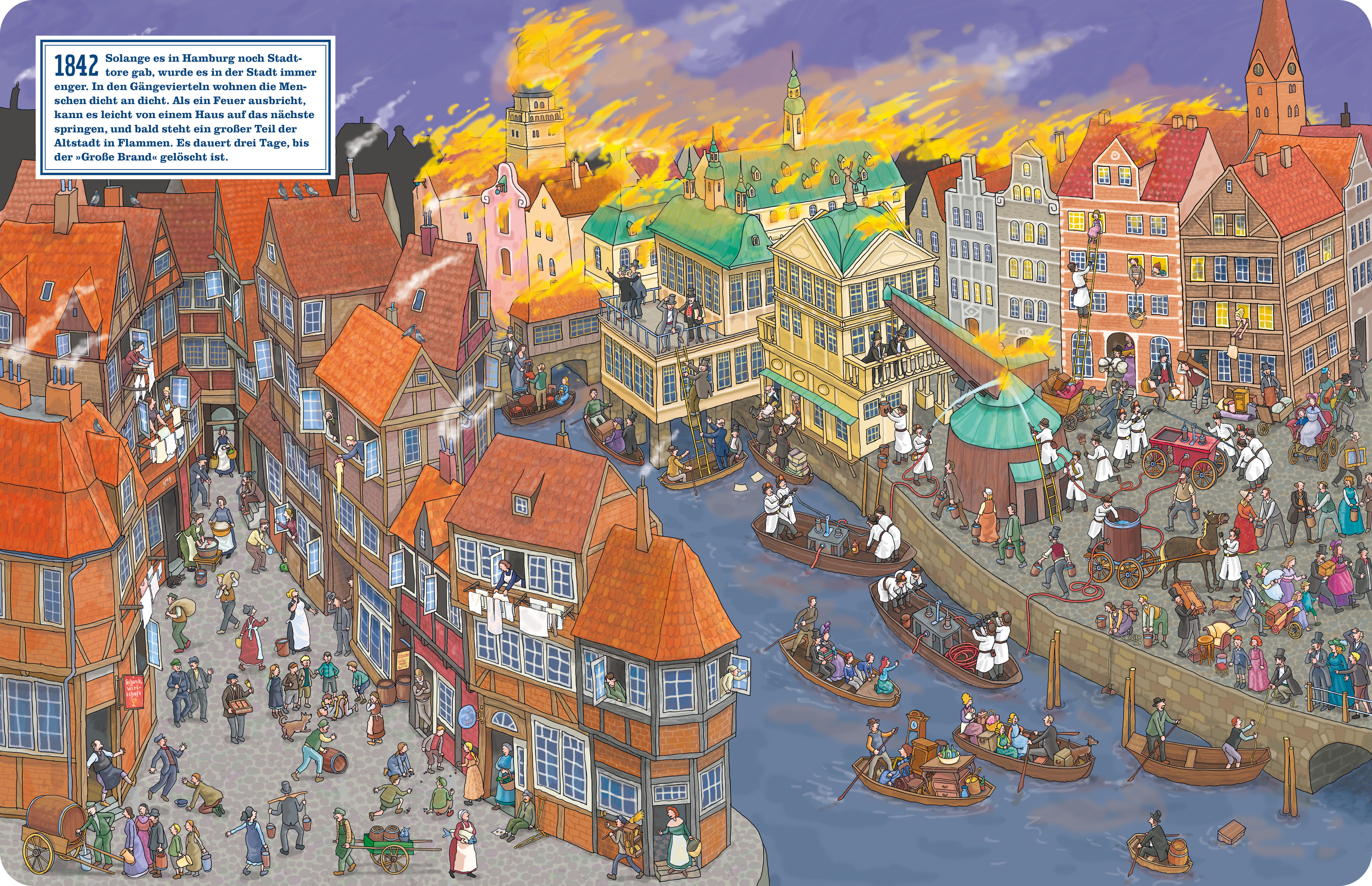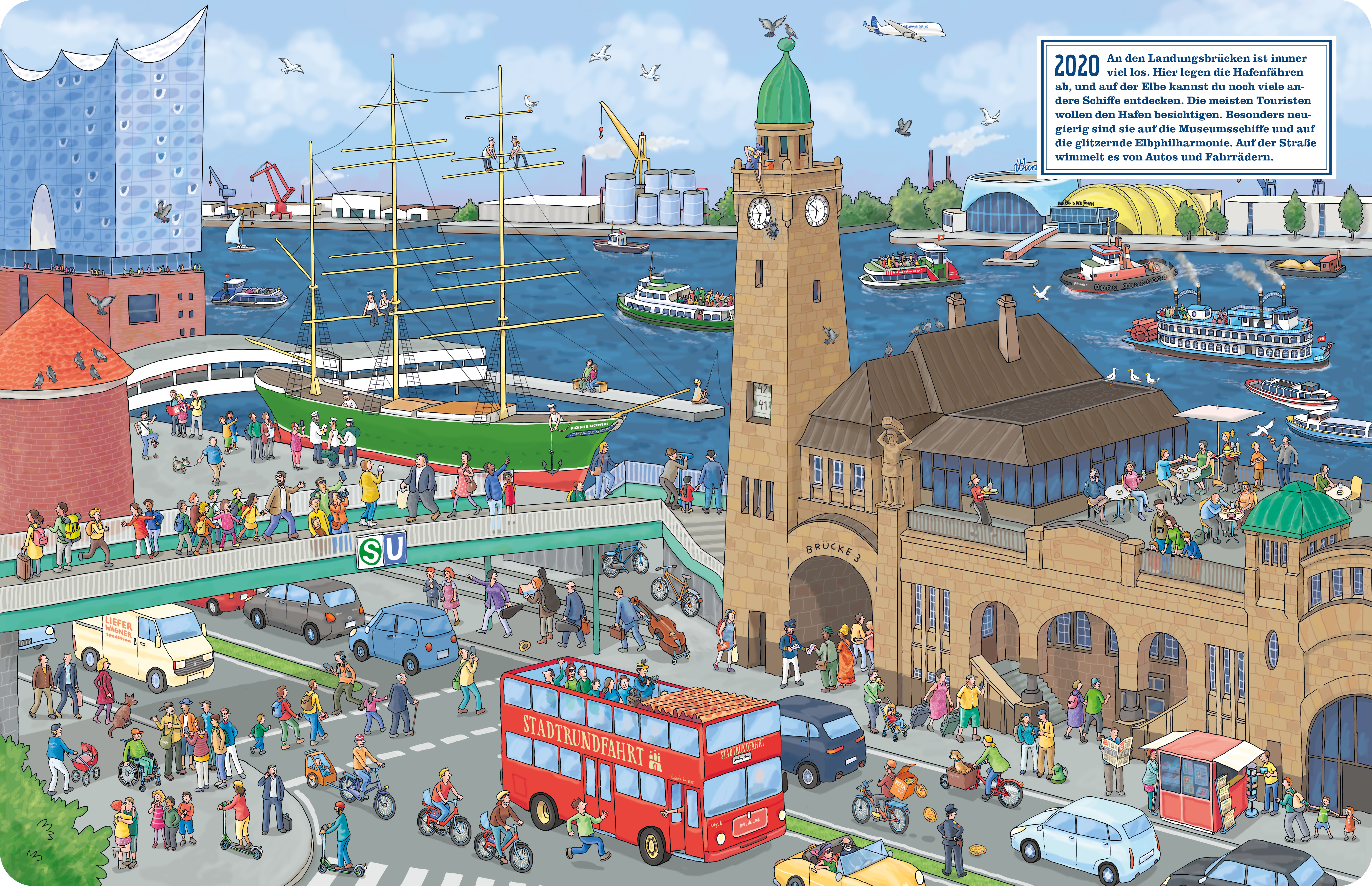 Hamburg ist eine alte Stadt, auch wenn man heute gar nicht mehr viel davon sieht. An verschiedenen Orten, die kleine Hamburgerinnen und Hamburger und ihre erwachsenen Mitbetrachter leicht wiedererkennen können, zeigt dieses großformatige Wimmelbuch, wie es frü...