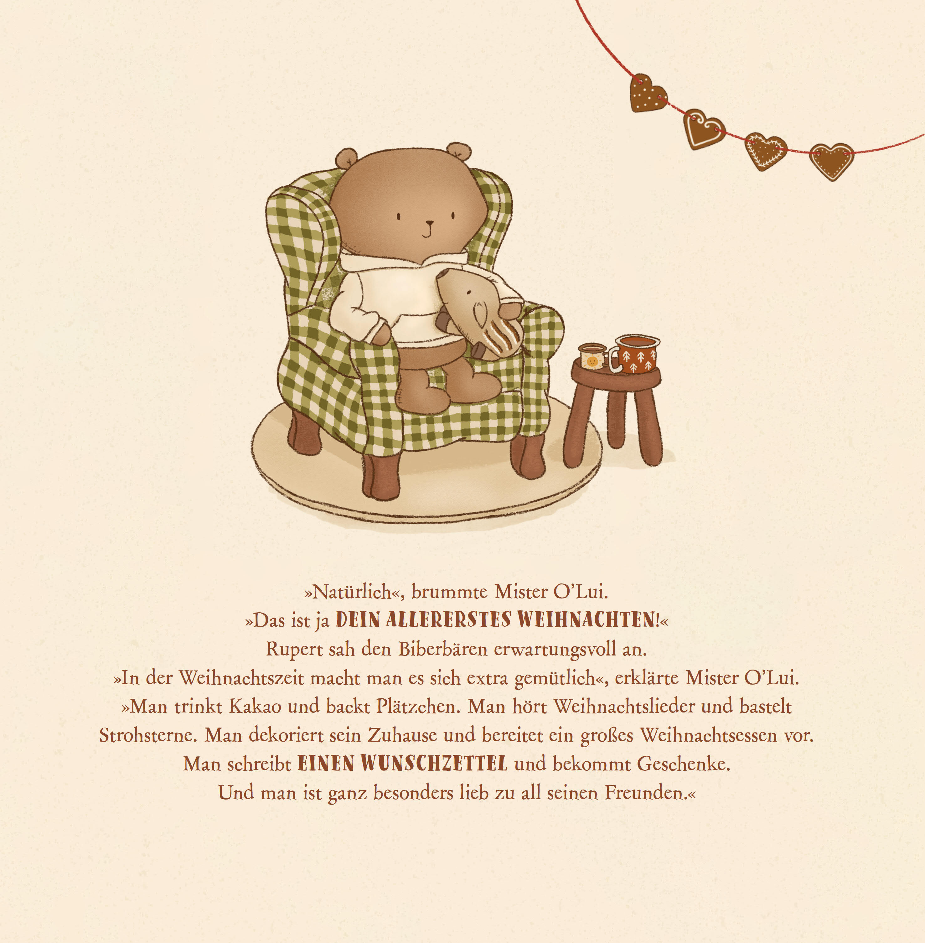 Als die ersten Schneeflocken vom Himmel fallen, beginnt Biberbär Mister O'Lui damit, das Häuschen für sich und seinen besten Freund Rupert zu schmücken. Strohsterne, Kerzen und sogar einen Tannenbaum gibt es! Rupert traut seinen Augen kaum, denn es ist sein a...