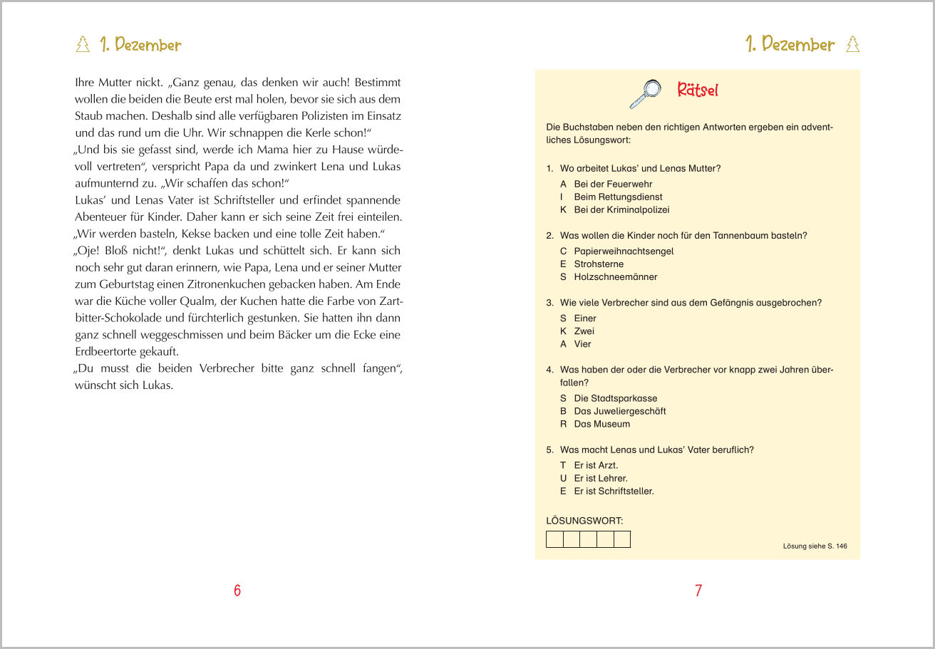 Ein Weihnachts-Krimi-Adventskalender - Ein Adventskalenderbuch zum Lesen und Rätseln für Kinder ab 9 Jahren. Die Mutter von Lukas und Lena ist Kriminalbeamtin und muss zwei aus dem Gefängnis entflohene Bankräuber schnappen. Die beiden machen sie sich mit ihrem...